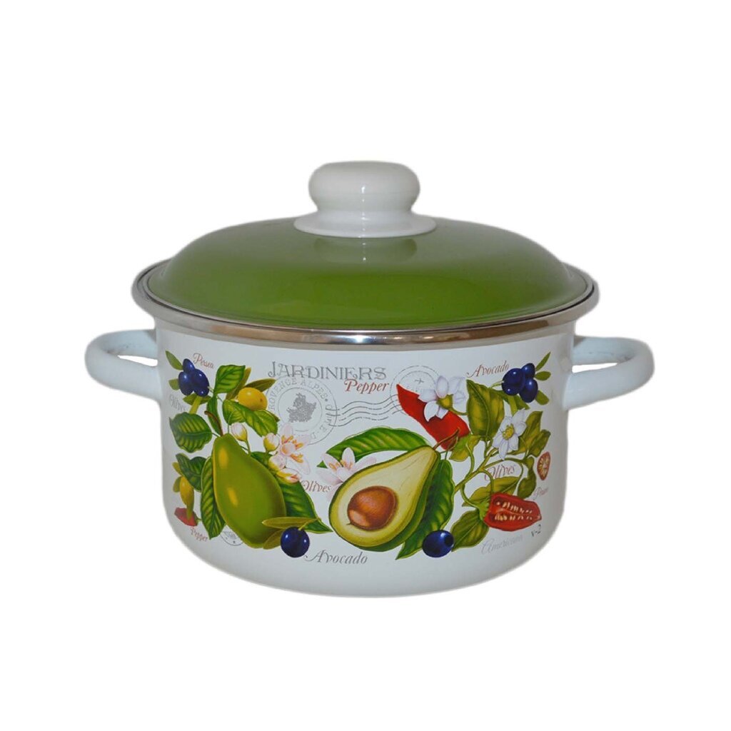 Кастрюля эмалированная сталь, 2 л, крышка сталь, цилиндрическая, СтальЭмаль, Авокадо, 6RD161M, белоснежная