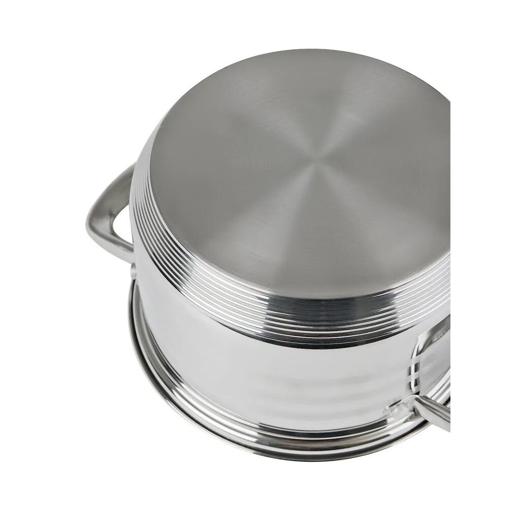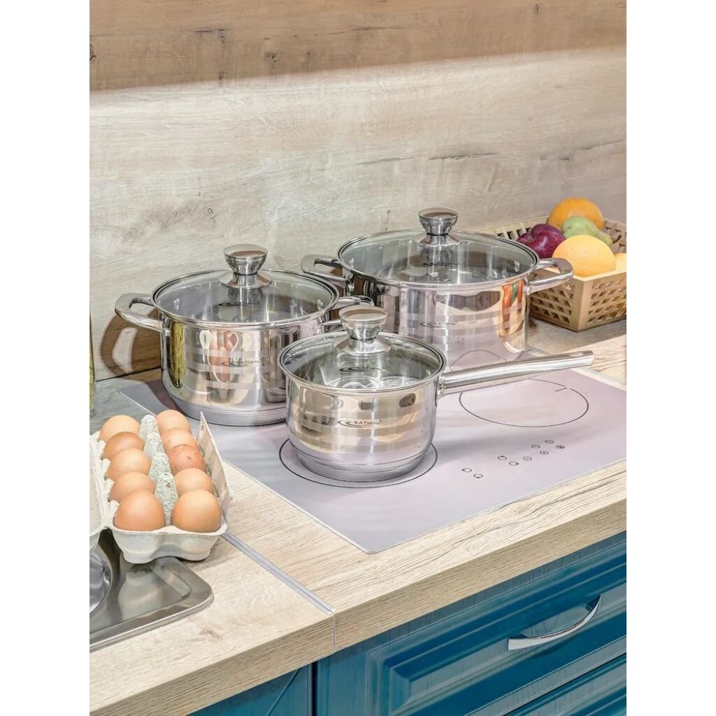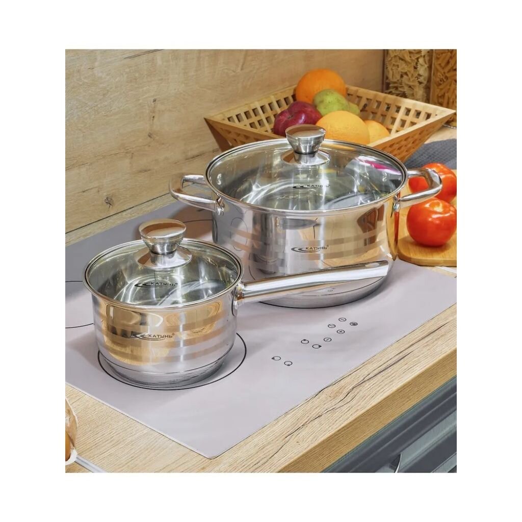 Кастрюля Катунь Элис 4.5 л — это современное решение для тех, кто ищет, какую кастрюлю выбрать для индукционной плиты или как выбрать кастрюлю для дачи. Корпус из нержавеющей стали марки 201 не впитывает запахи и легко очищается, а капсульное дно толщиной 6 мм обеспечивает быстрое и равномерное прогревание на любых видах плит, включая индукционные, газовые, электрические и стеклокерамические.