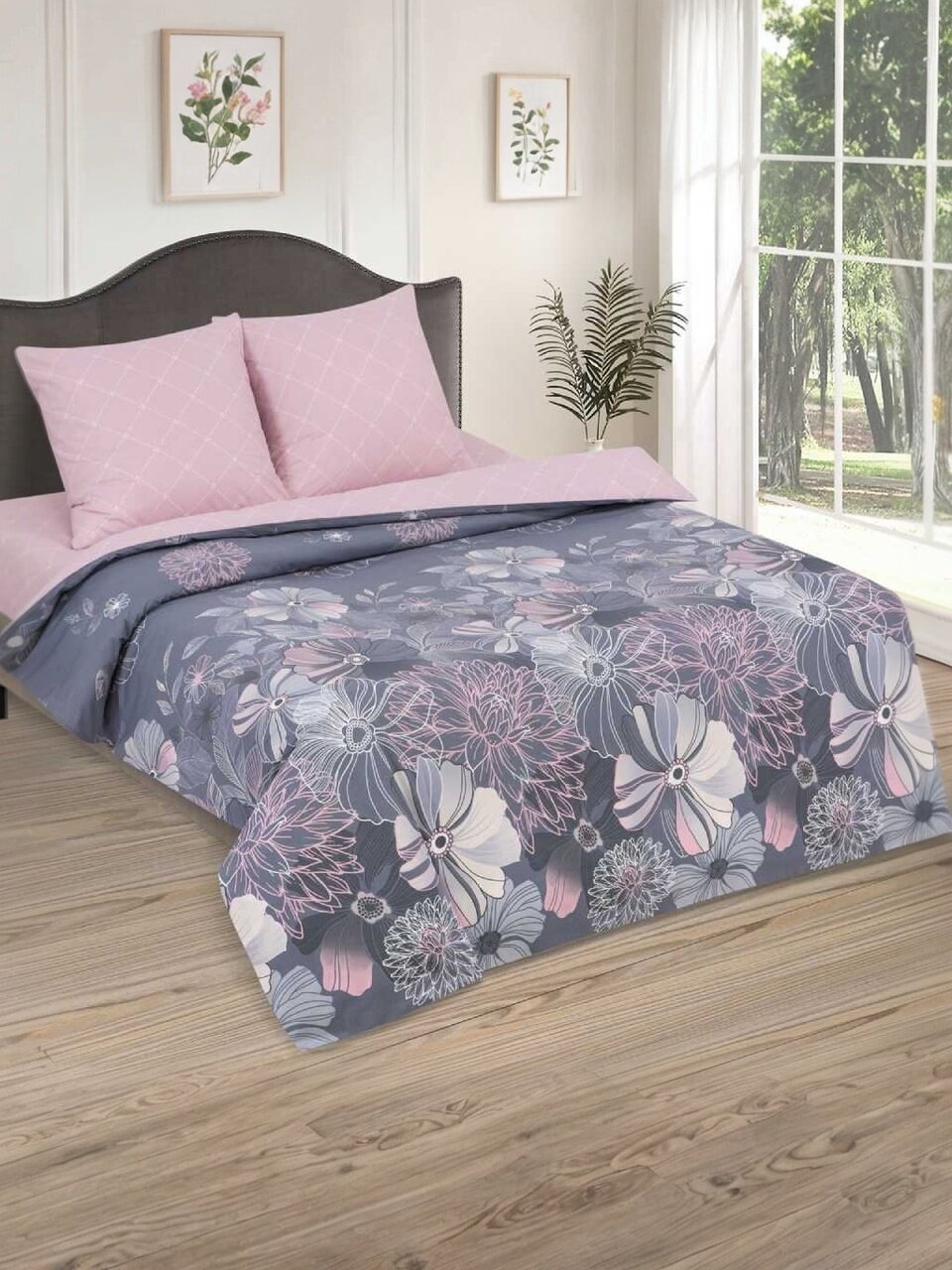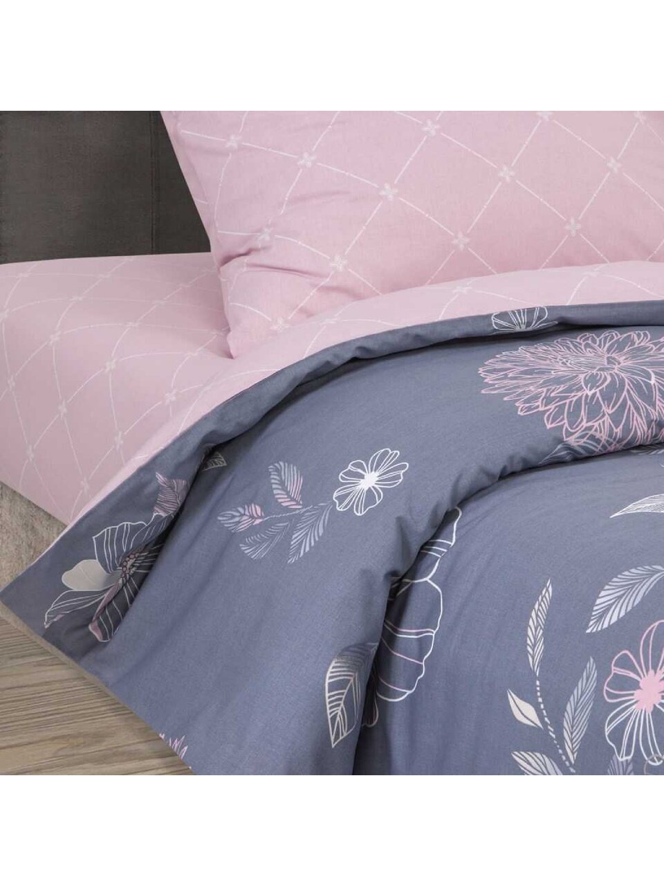 В комплекте 4 предмета: простыня на резинке 160х200 см, пододеяльник 175х215 см, 2 наволочки 70х70 см.