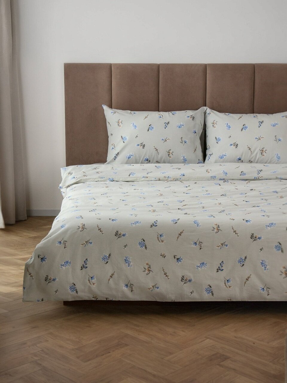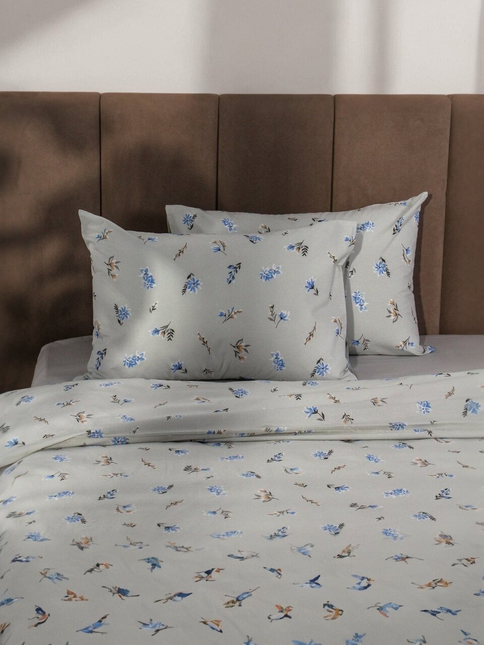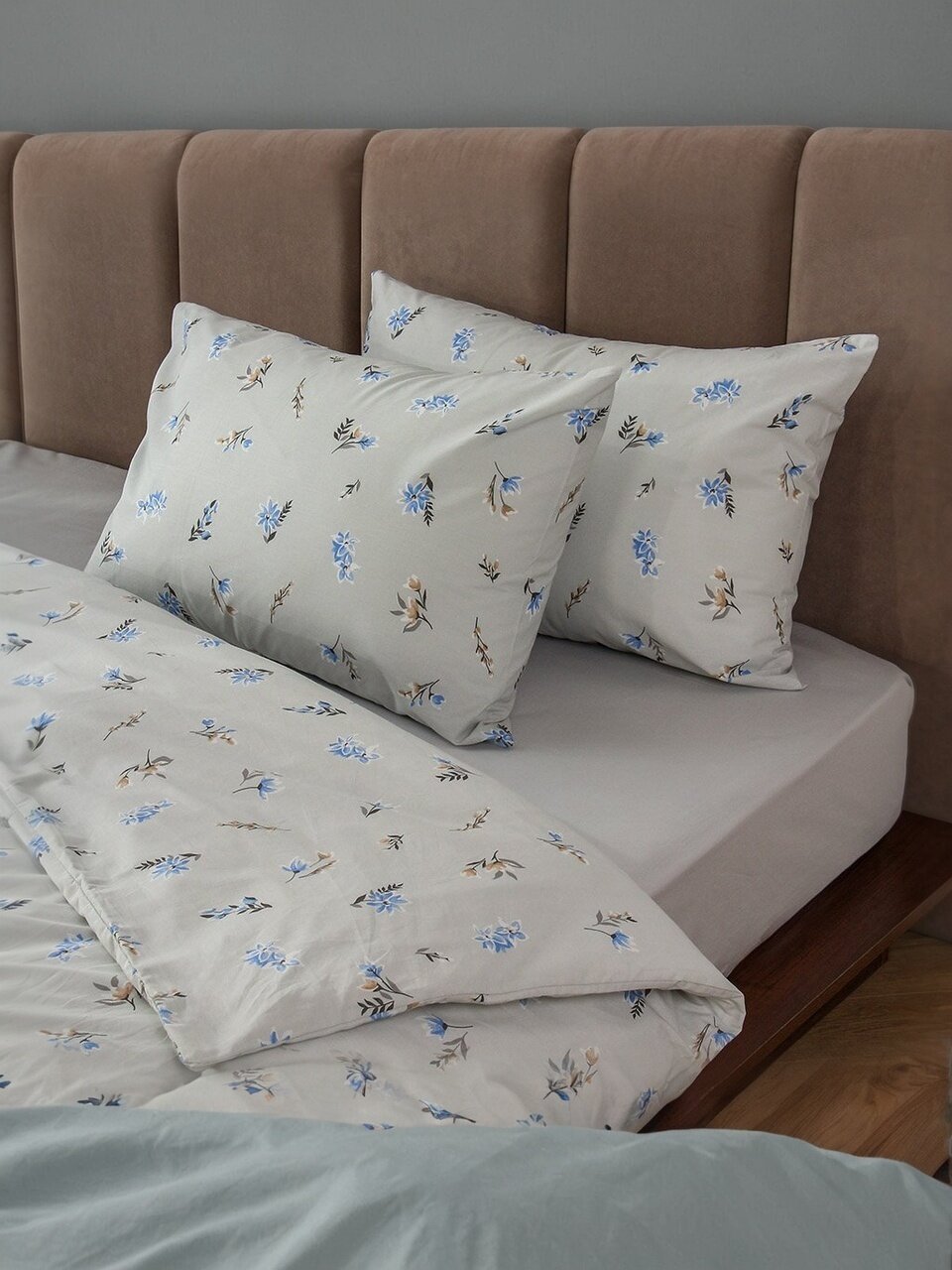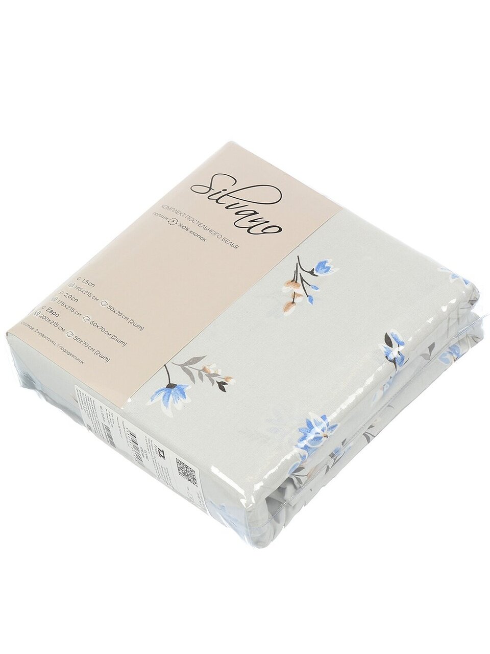 Постельное белье Silvano евро (3 предмета, 2 наволочки 50х70, пододеяльник 200х215, хлопковый поплин, цветы, серый): стиль и комфорт для вашего сна по выгодной цене.