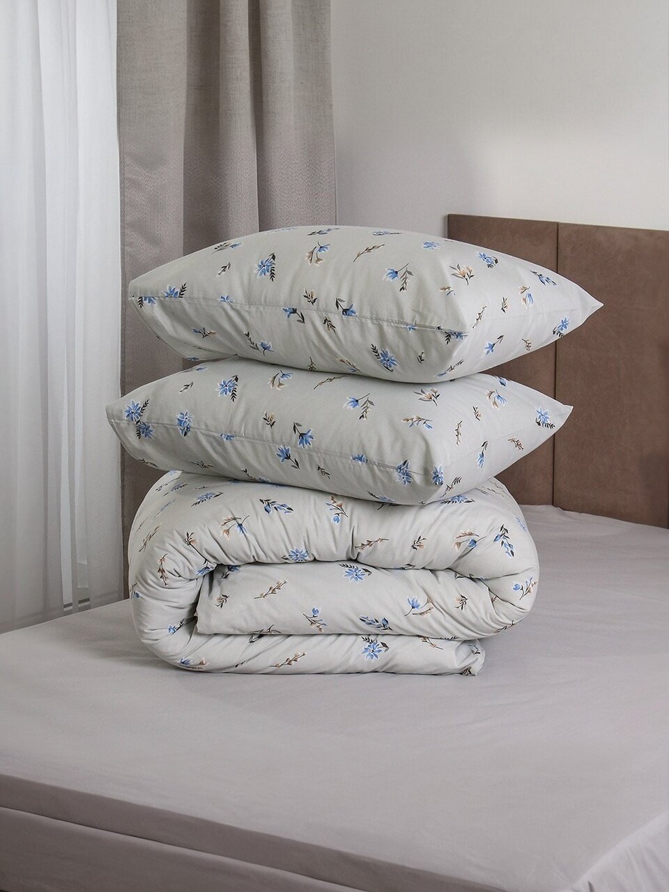 Комплект состоит из 3 предметов: пододеяльник 200х215 см, две наволочки 50х70 см, выполнен из натурального хлопка (поплин), без простыни.