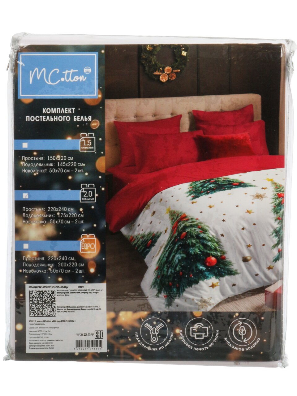Двуспальный комплект постельного белья Mcotton "Новогодняя ель" — удачный выбор для тех, кто ищет купить недорого постельное белье для дачи или квартиры с акцентом на праздничный дизайн и комфорт. Микросатин на основе вискозы и микрофибры обеспечивает мягкость, приятную на ощупь текстуру и долгий срок службы. Застёжка-молния на пододеяльнике облегчает заправку, а яркий красный цвет с новогодним принтом создаёт атмосферу уюта и праздника.