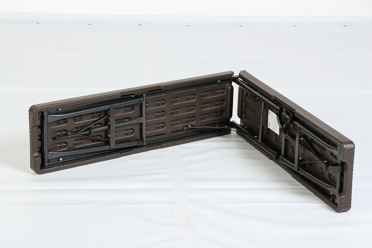 Стол складной – для кемпинга, дачи или других мероприятий на свежем воздухе, удобно складывается. Для удобной транспортировки есть ручка, относительно небольшой размер 90х75 см позволяет его перевозить в просторном багажнике и хранить в кладовке. База (ножки) выполнены из стали, а пластиковая столешница выполнена с торцов под ротанг, а рабочая поверхность под дерево. Она имеет размеры в разложенном виде 180х75 см. Стол удобен в использовании, долговечный, вместительный и прост в обслуживании и установке.