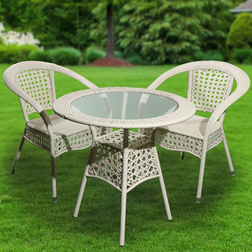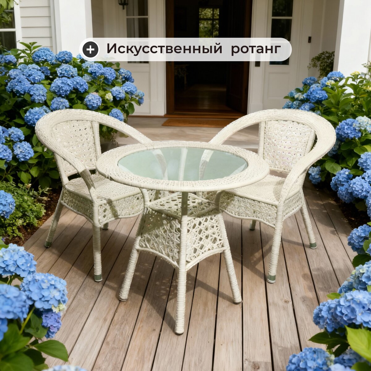 Мебель садовая Лоран, белая, стол, 80х80х70 см, 2 кресла, Y9-296