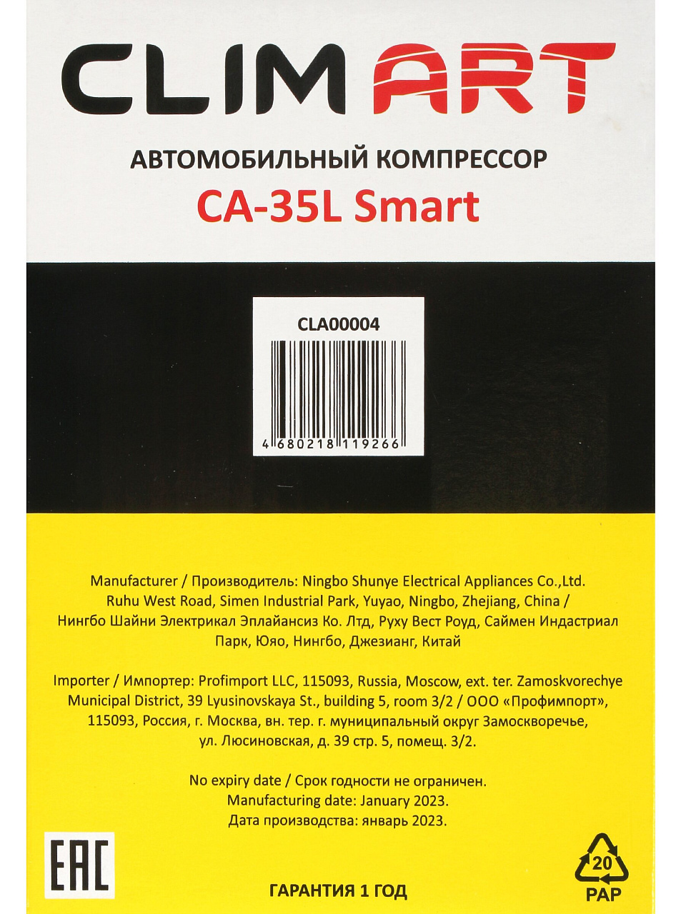 Вы можете приобрести «Компрессор автомобильный Clim Art, CA-35L Smart, 35 л/мин, 12 В, 7 атм, 168 Вт, к прикуривателю, сумка, CLA00004» и другие товары в нашем интернет-магазине в Орле по низким ценам и с бесплатным самовывозом.