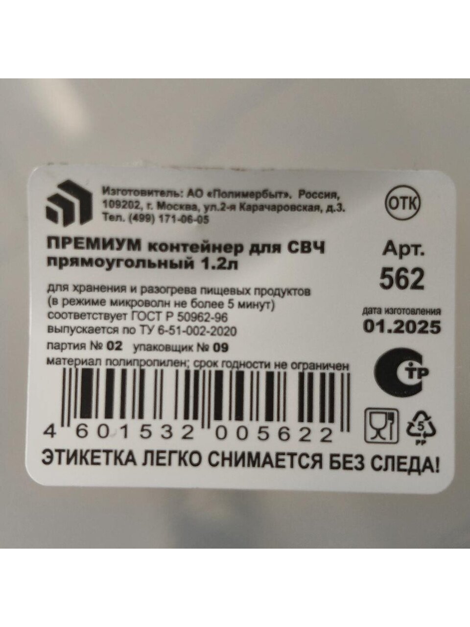 Закажите контейнер пищевой Полимербыт Премиум 1.2 л прямо сейчас — выгодная цена, быстрая доставка и гарантия оригинального качества от российского производителя.