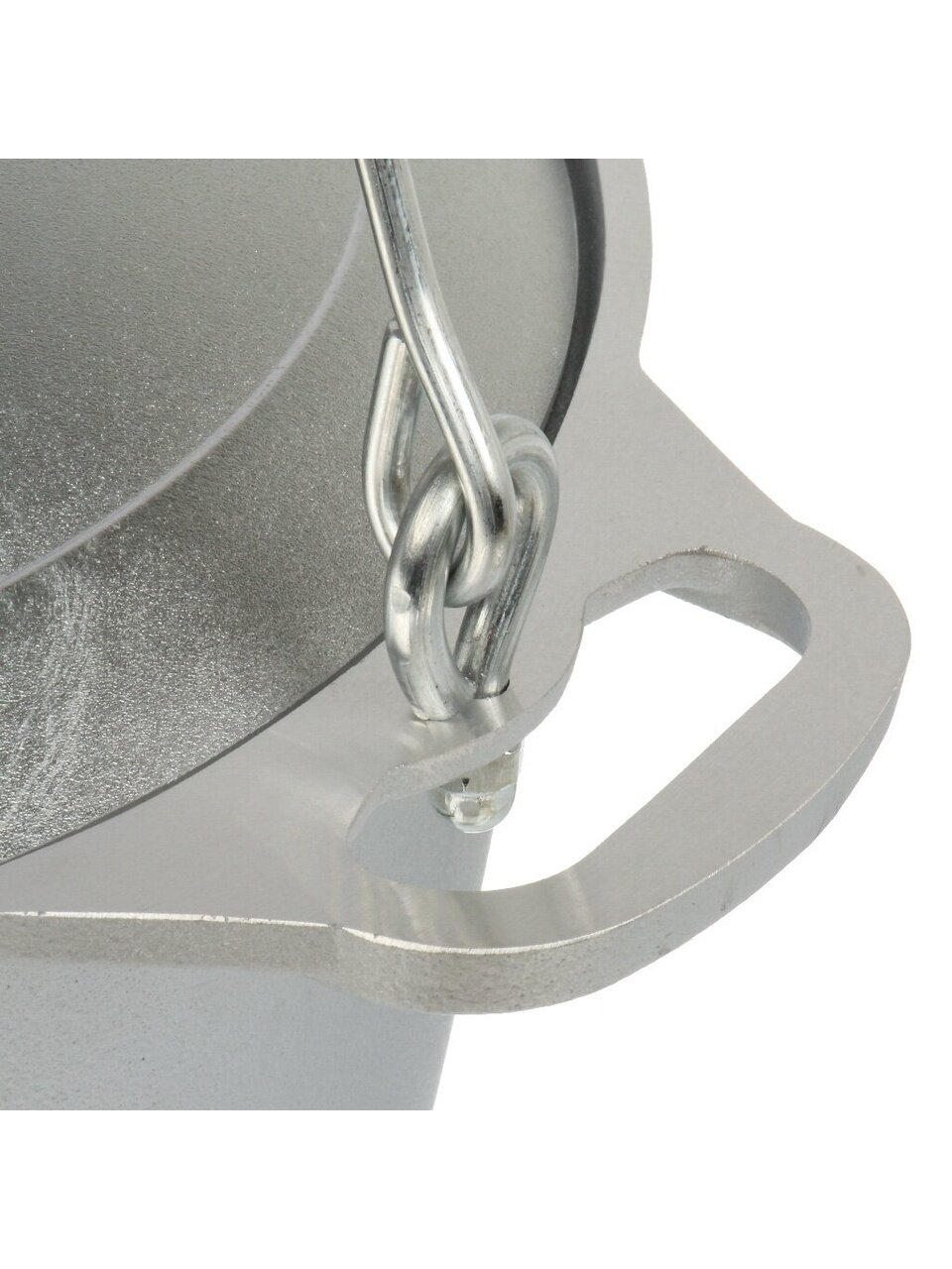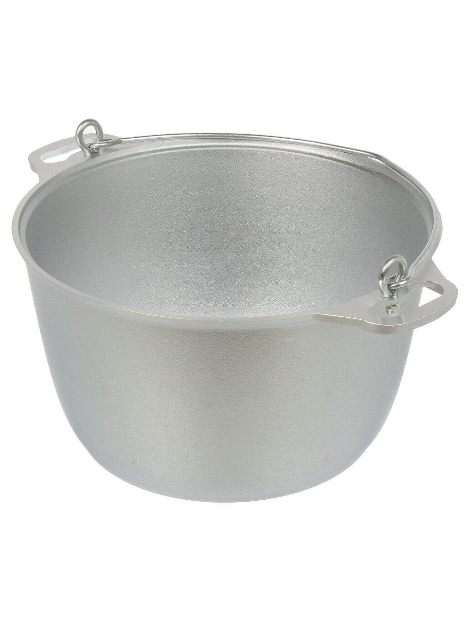 - Для подвешивания над огнем имеется ручка, которая прочно крепится к котлу.