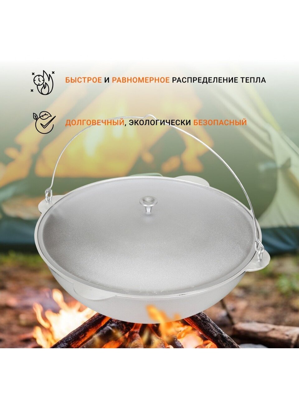 Котелок Kukmara — идеальный выбор для любителей активного отдыха и вкусной еды на природе. Изготовленный из высококачественного литого алюминия, он обеспечивает равномерное распределение тепла и длительное сохранение температуры, позволяя приготовить самые разнообразные блюда — от ароматного плова до нежной каши.