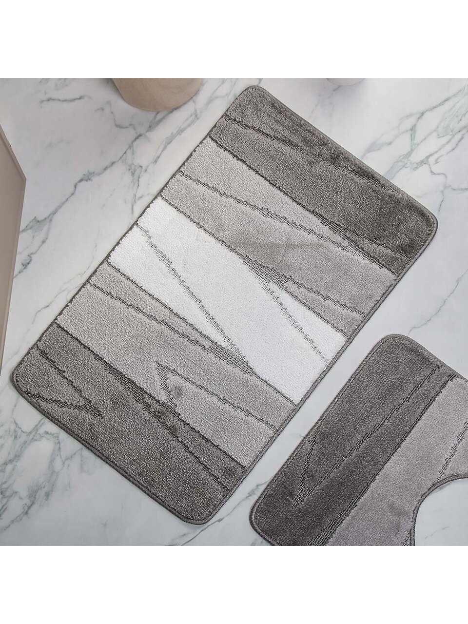 Комплект ковриков для ванной AQUA-PRIME Enigma: стильный серый дизайн, антискользящее покрытие, два размера — комфорт и безопасность для вашей семьи.
