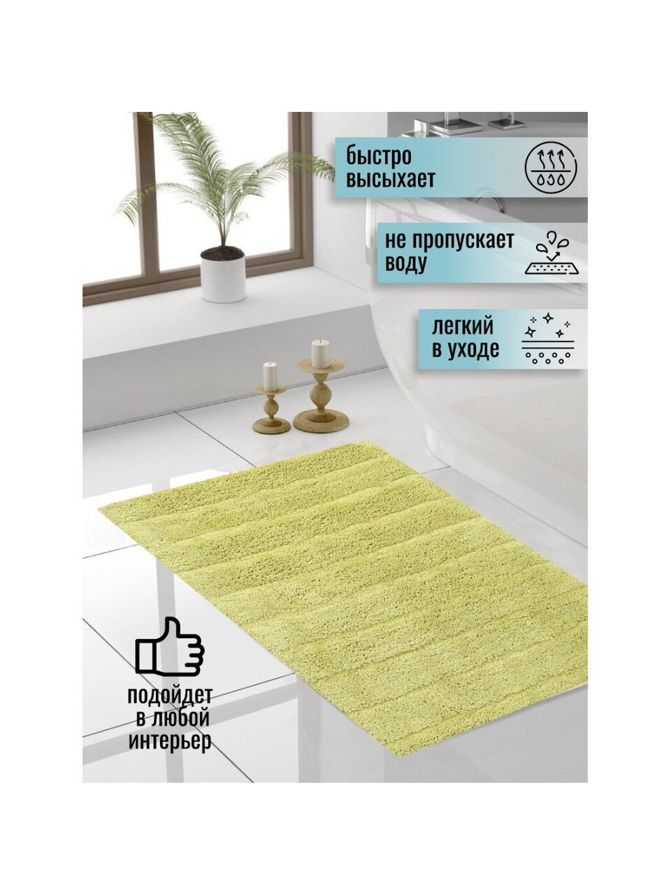 Постелите коврик на пол и заходить в ванную босиком будет приятно даже в холодное время года. Он подарит ощущение тепла и комфорта, а благодаря оригинальному дизайну отлично впишется в ваш интерьер.