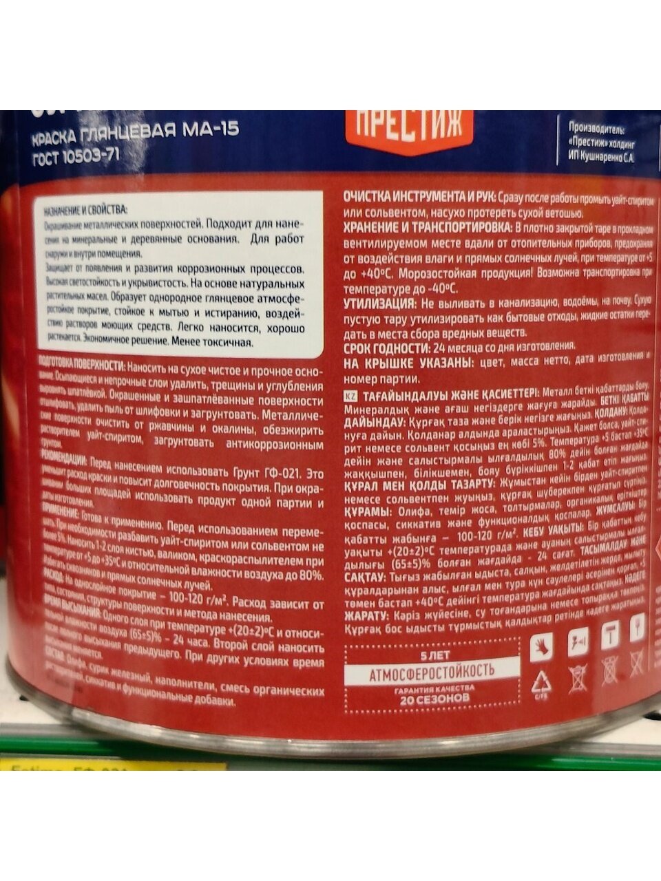 Вы можете приобрести «Краска Престиж, Сурик МА-15, масляная, универсальная, глянцевая, 1.9 кг» и другие товары в нашем интернет-магазине в Борисоглебске по низким ценам и с бесплатным самовывозом.