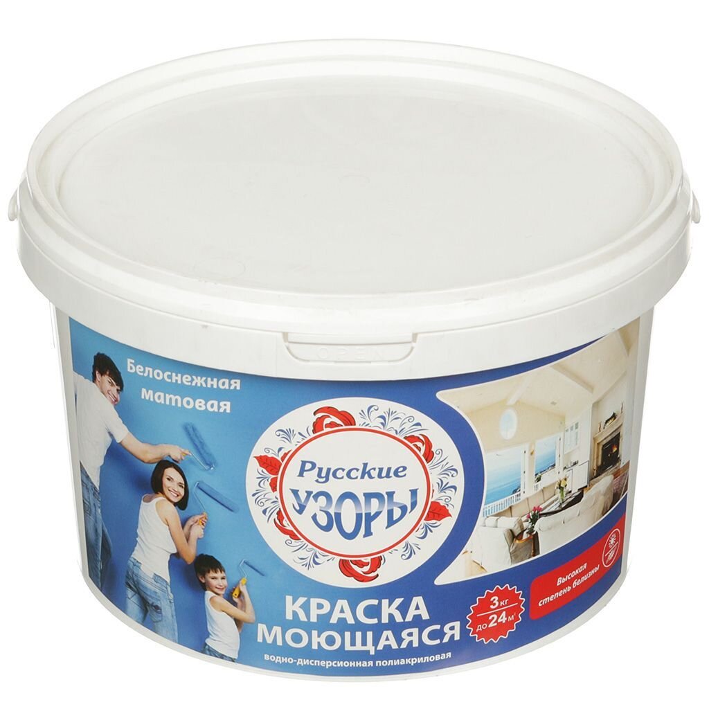 Краска водно-дисперсионная, Русские узоры, полиакриловая, универсальная, моющаяся, влагостойкая, матовая, 3 кг