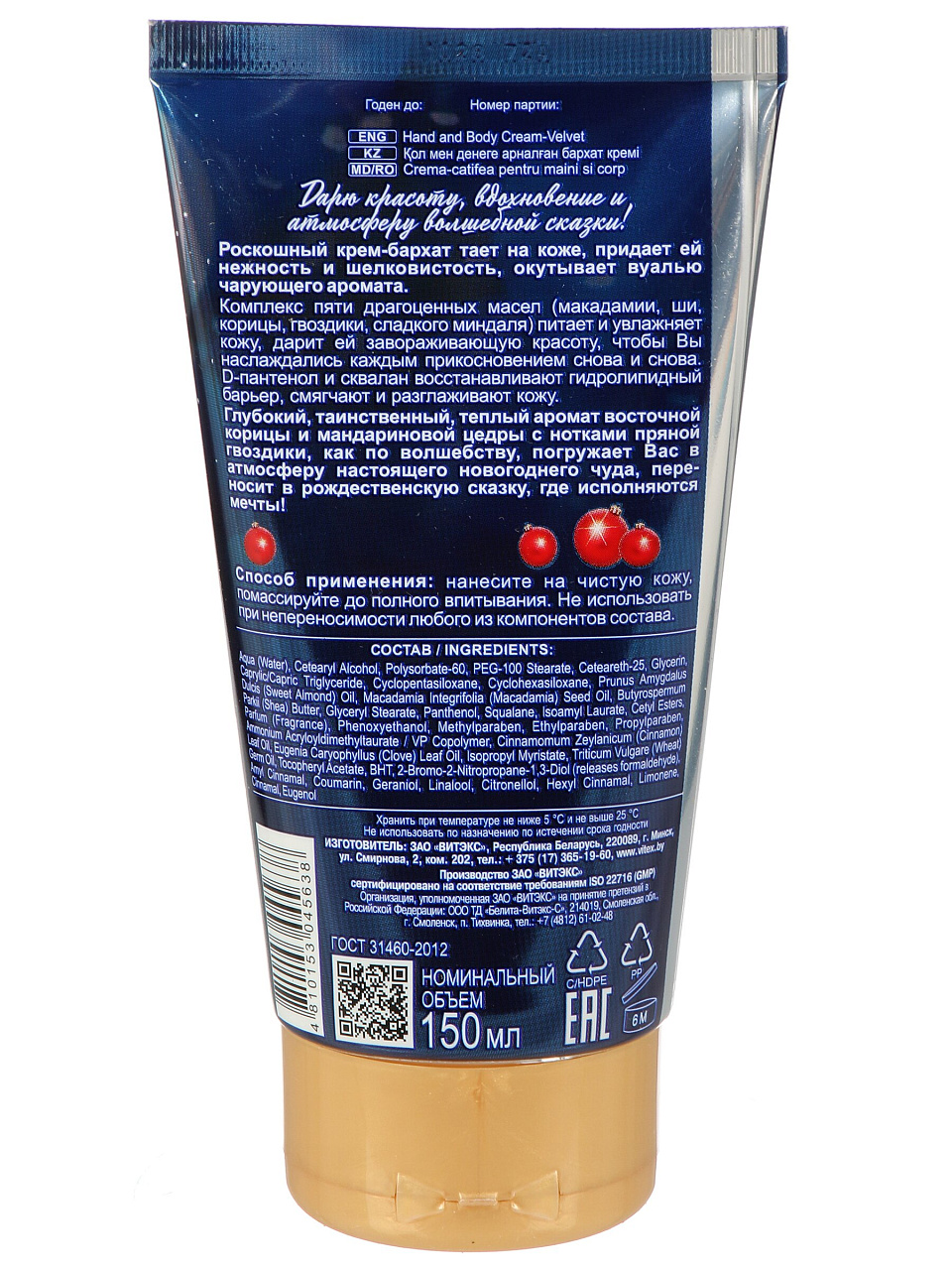 Вы можете приобрести «Крем-бархат для рук и тела, Biтэкс, Новогодняя коллекция, смягчающий, 150 мл, 61024» и другие товары в нашем интернет-магазине в Тамбове по низким ценам и с бесплатным самовывозом.