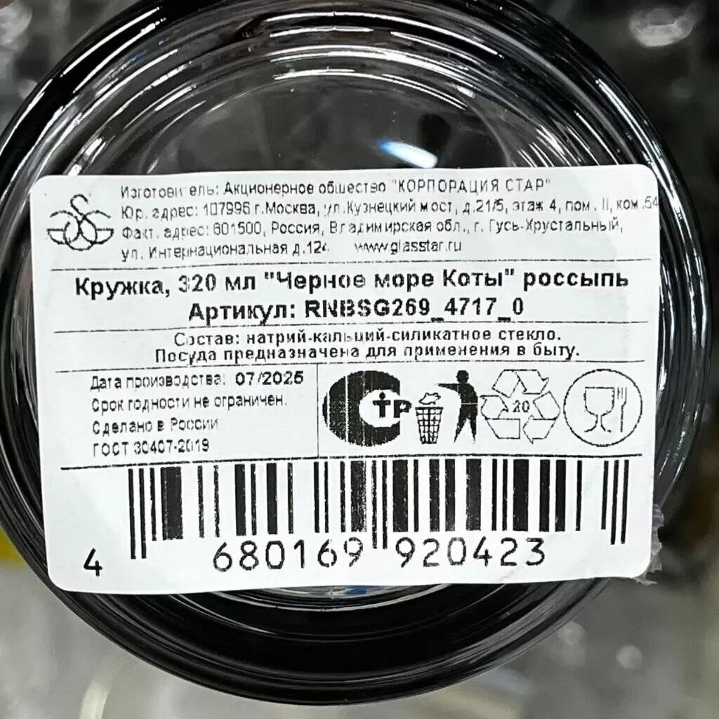 Вы можете приобрести «Кружка стекло, 320 мл, Черное море Коты, Glasstar, RNBSG4717» и другие товары в нашем интернет-магазине в Орле по низким ценам и с бесплатным самовывозом.