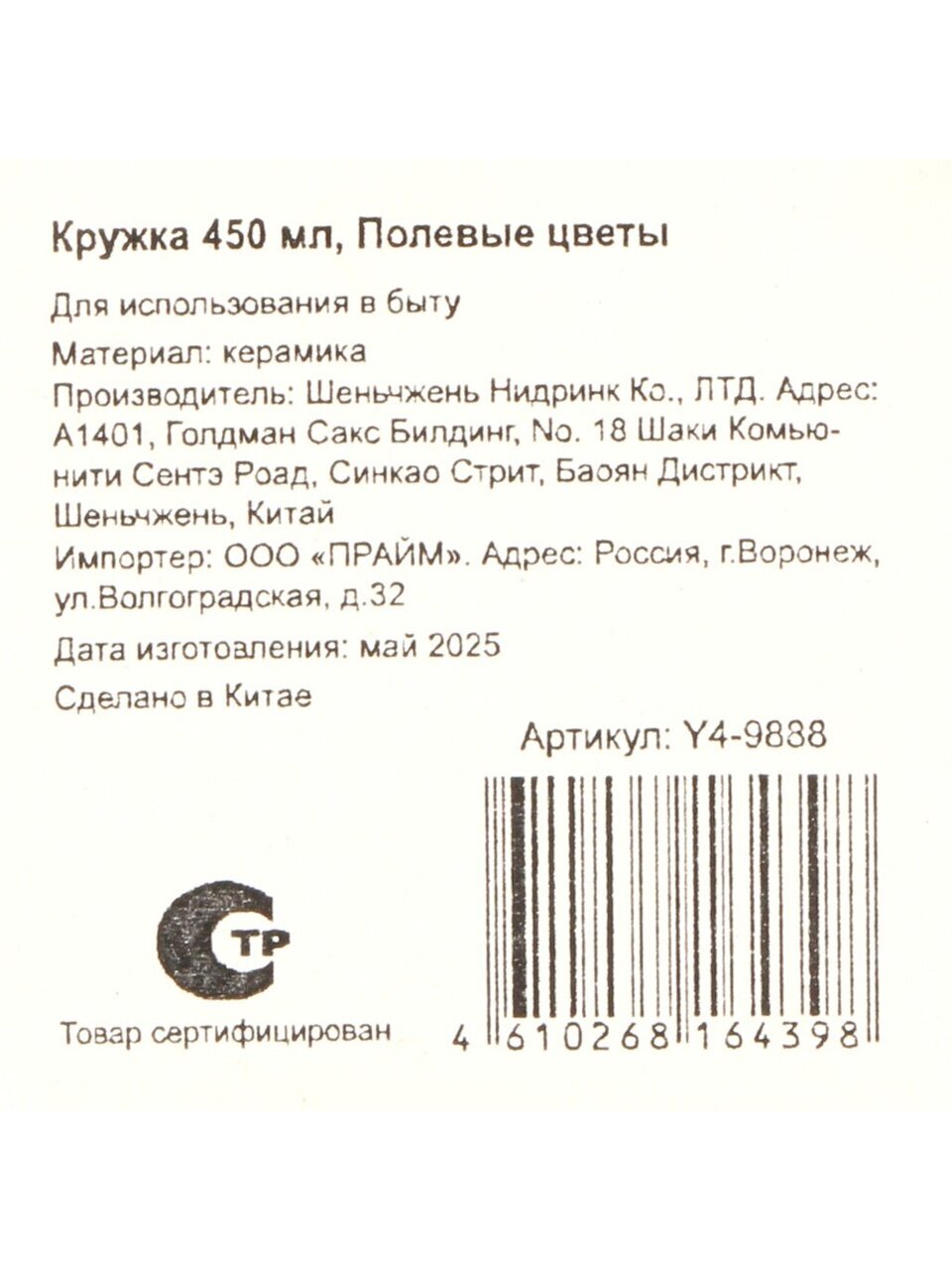 Вы можете приобрести «Кружка керамика, 450 мл, Полевые цветы, Y4-9888, в ассортименте» и другие товары в нашем интернет-магазине в Краснодаре по низким ценам и с бесплатным самовывозом.