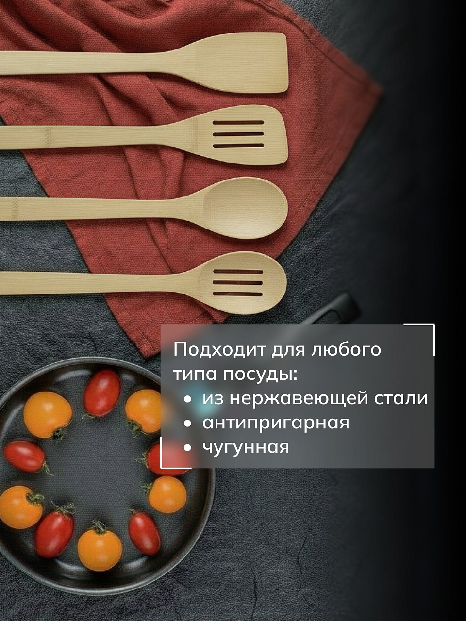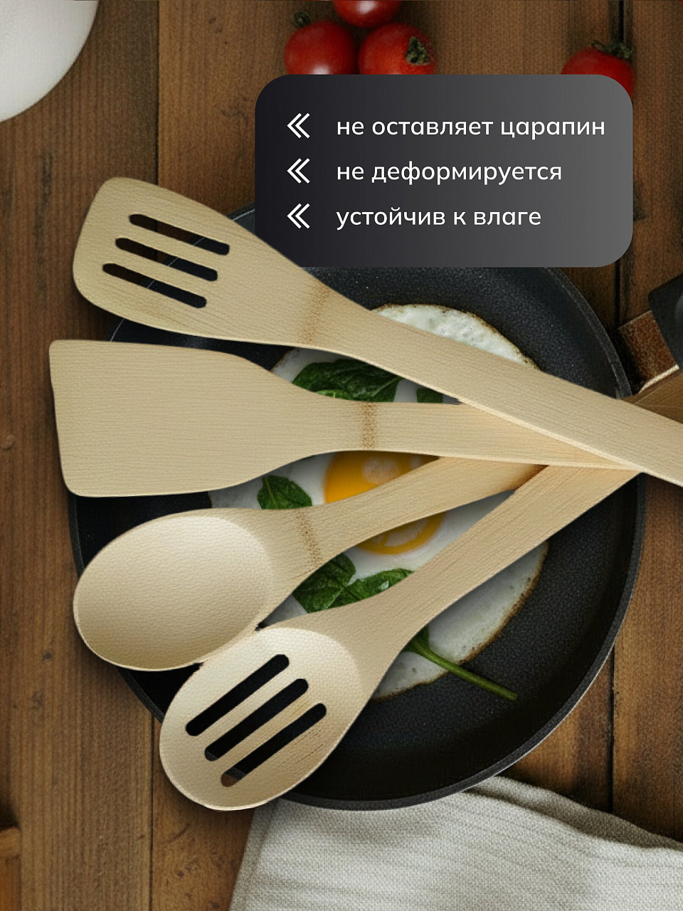 Этот замечательный набор кухонных лопаток поможет при приготовлении пищи. Изделия выполнены из бамбука и безопасны для посуды с антипригарным покрытием. Набор станет отличным дополнением к коллекции ваших кухонных принадлежностей.