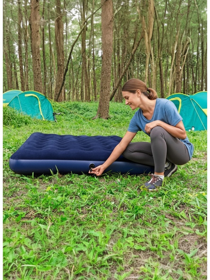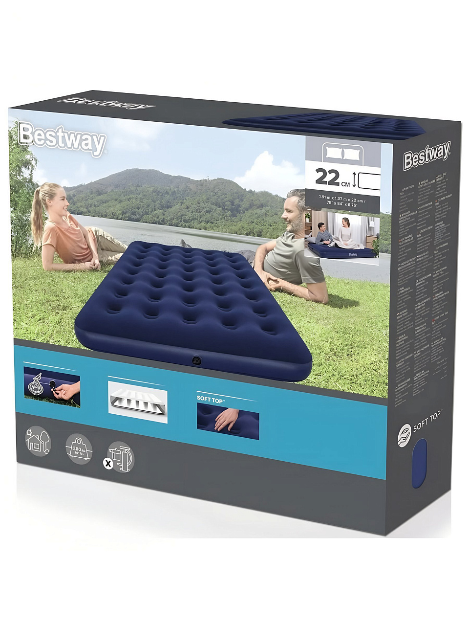 Матрас Bestway, выполненный из прочного флокированного винила, обеспечивает комфортный и здоровый сон в любых условиях. Его уникальная конструкция позволяет ему сохранять форму даже при неравномерном распределении нагрузки. Этот матрас легко надувать и сдувать, что делает его прекрасным выбором для путешествий или отдыха на природе. Кроме того, он может служить дополнительным спальным местом в квартире или доме. Если пространство ограничено, надувные матрасы становятся отличным решением для размещения гостей. Всё, что нужно сделать, - это надуть матрас и разместить его в свободной комнате.