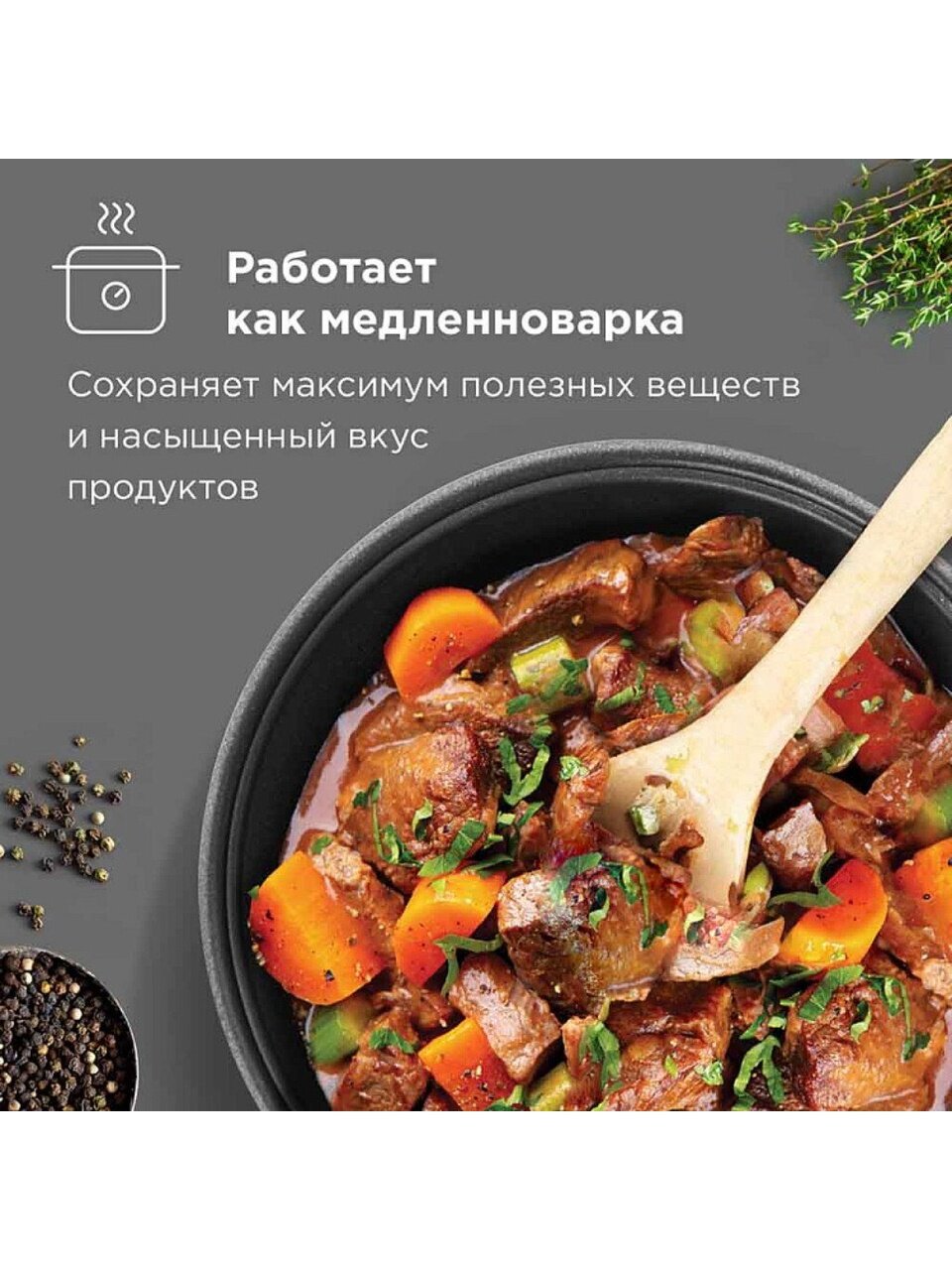 - Антипригарное покрытие облегчает уход и сохраняет вкус продуктов;