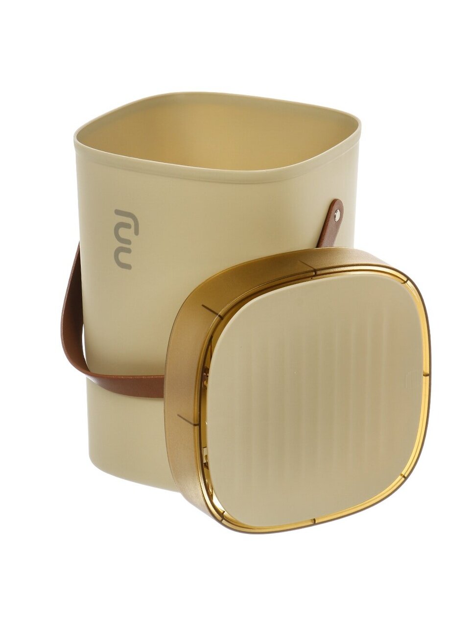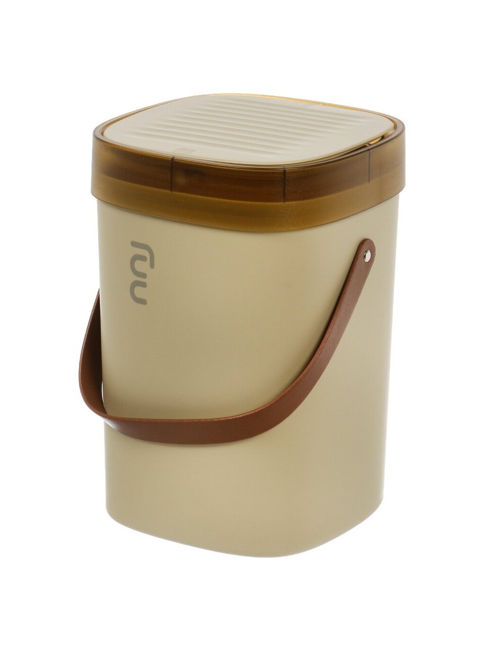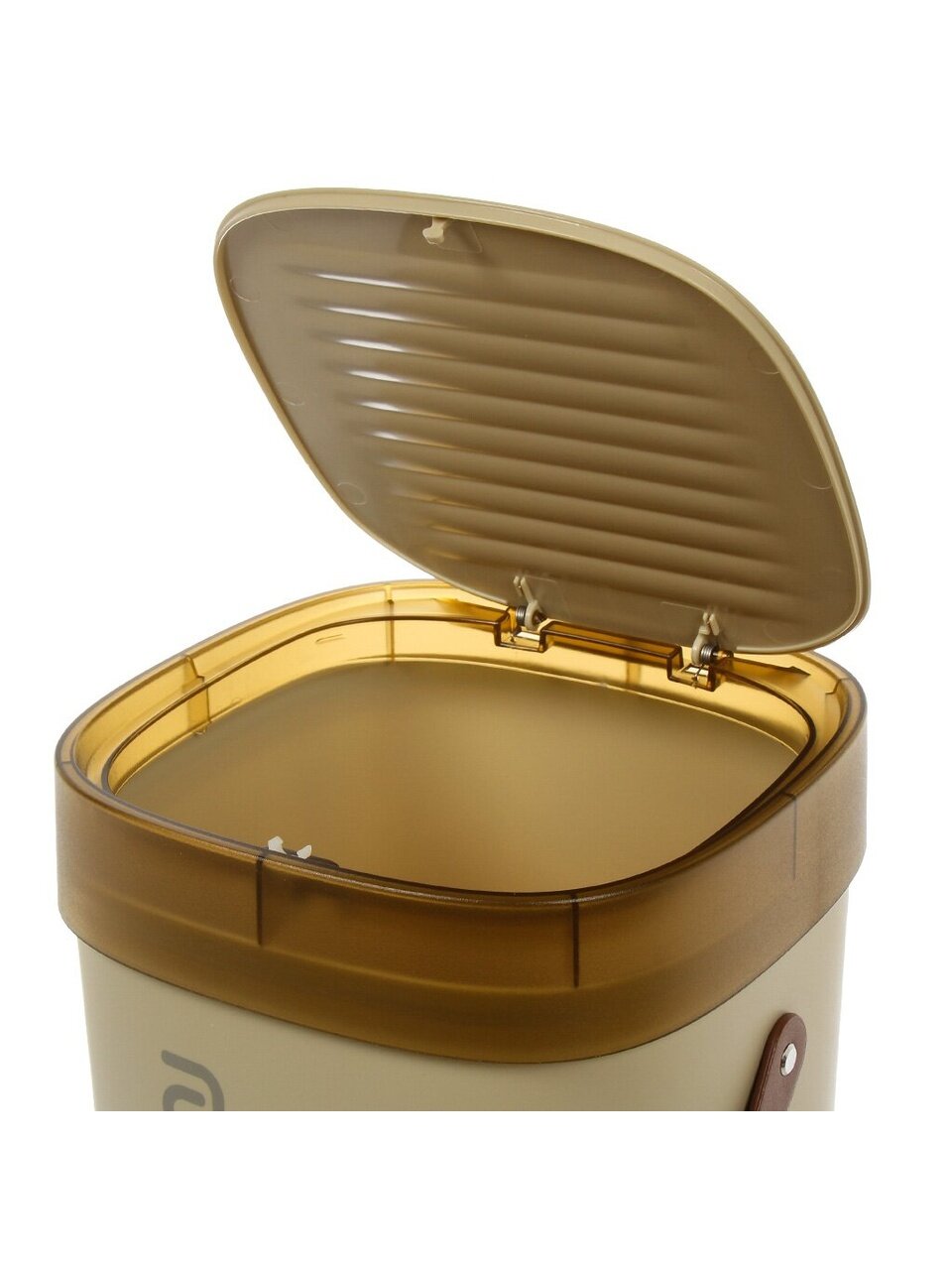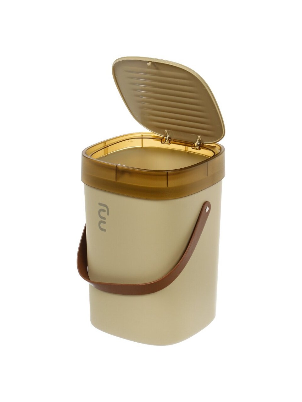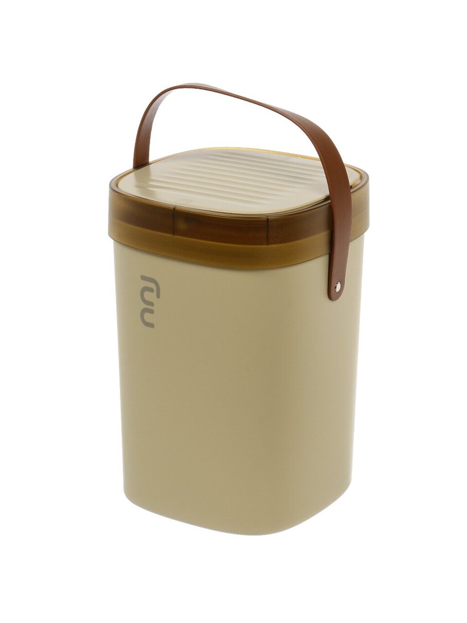 Компактный квадратный контейнер для мусора 21х21х30 см: оптимальное решение для дома и дачи, стильный бежевый дизайн, удобная крышка и ручка для легкой уборки.