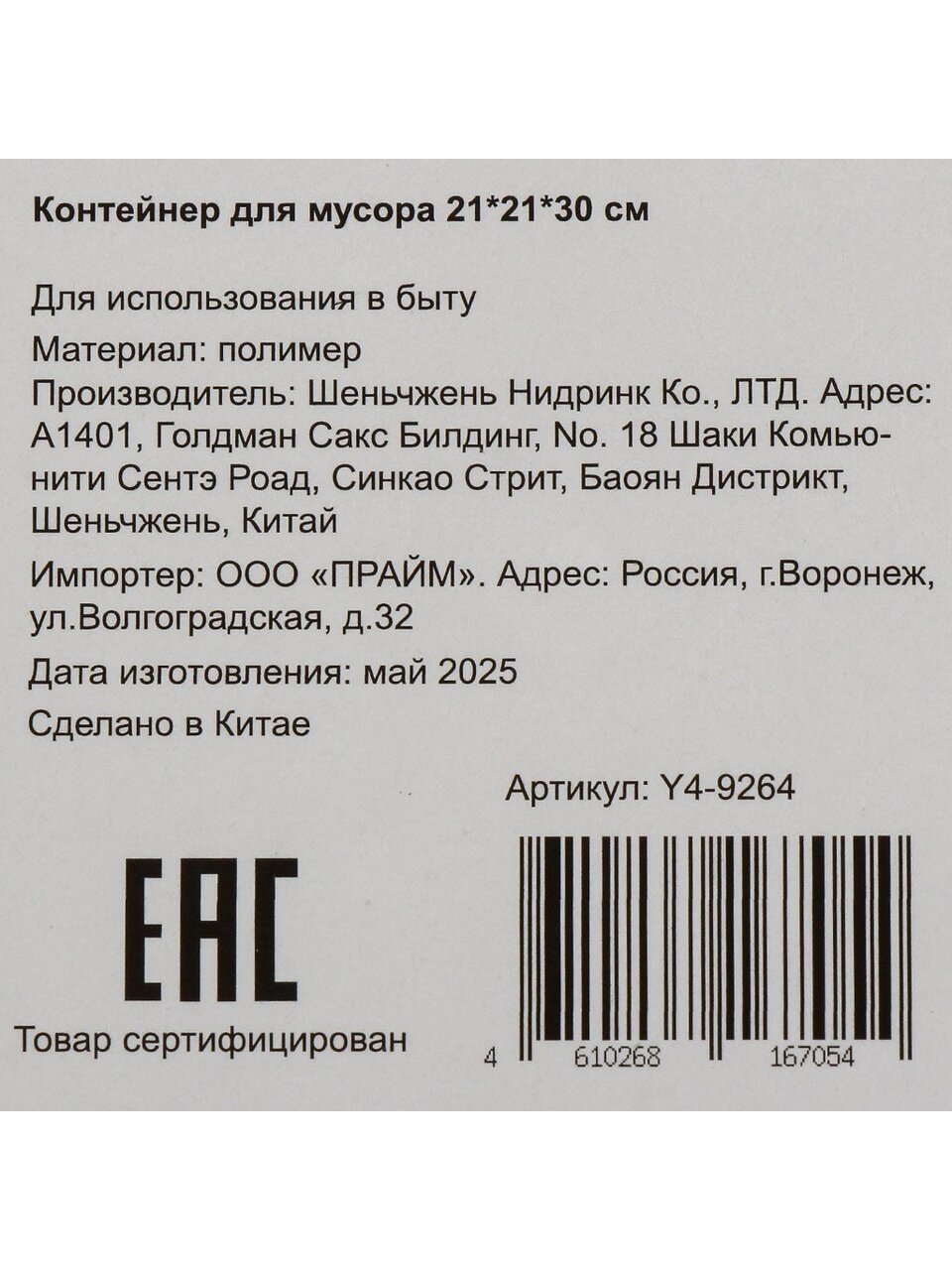 Вы можете приобрести «Контейнер для мусора пластик, квадратный, 21х21х30 см, Y4-9264» и другие товары в нашем интернет-магазине в Клинцах по низким ценам и с бесплатным самовывозом.
