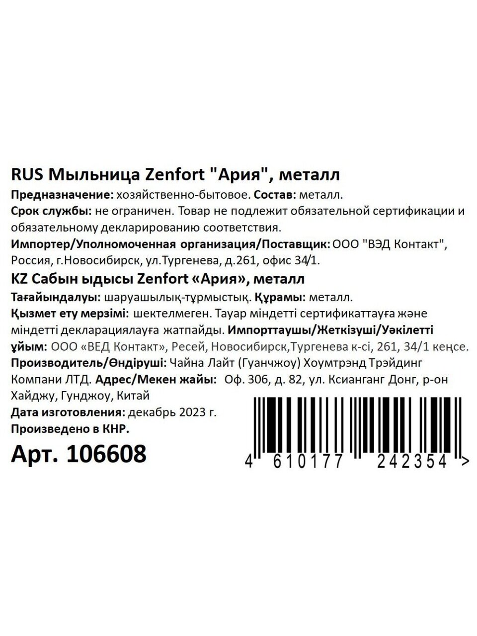 Мыльница настольная, Zenfort, Ария, металл, 13.5х8.3х3.5 см, черная, 106608