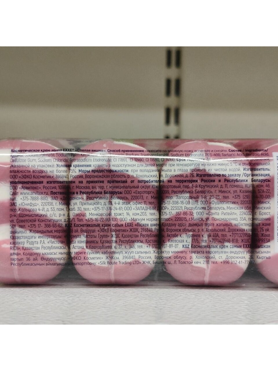 Вы можете приобрести «Крем-мыло косметическое Exxe, 1+1 Спелая вишня, 4 шт, 75 г» и другие товары в нашем интернет-магазине в Орле по низким ценам и с бесплатным самовывозом.