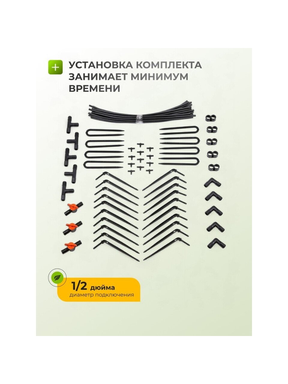 Простота монтажа и эксплуатации делает комплект Жук отличным выбором для владельцев приусадебных участков и дачников, стремящихся сэкономить время и силы. Все элементы выполнены из прочного полиэтилена и пластика, что гарантирует долговечность и устойчивость к воздействию внешних факторов. Система подключается к емкости с водой, что позволяет использовать дождевую или накопленную воду, обеспечивая экологичность и экономию ресурсов.
