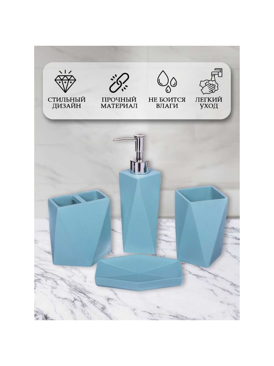 Вы можете приобрести «Набор для ванной 4 предмета, голубой, полирезина, стакан, подставка для зубных щеток, дозатор для мыла, мыльница, Y324» и другие товары в нашем интернет-магазине в Ельце по низким ценам и с бесплатным самовывозом.