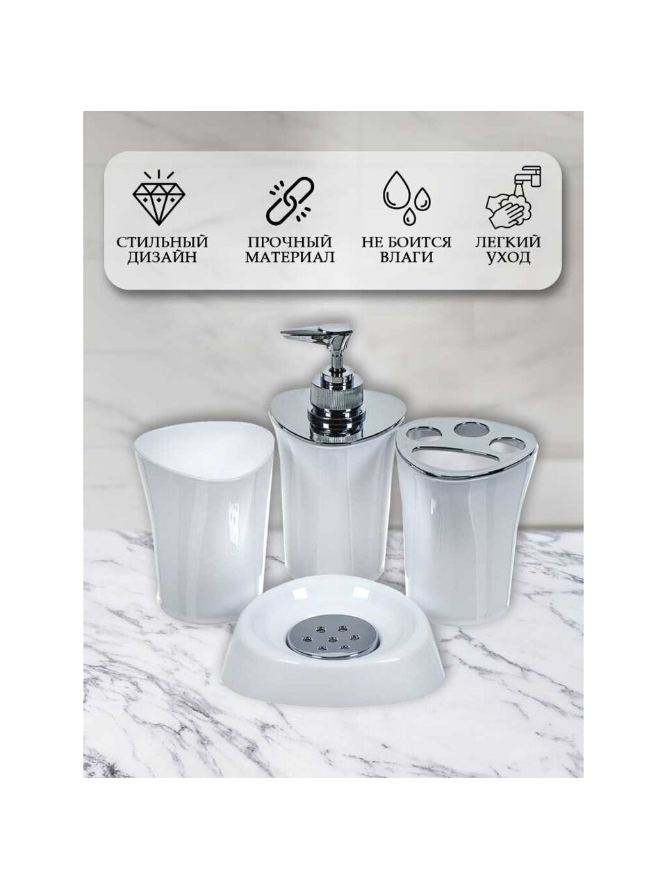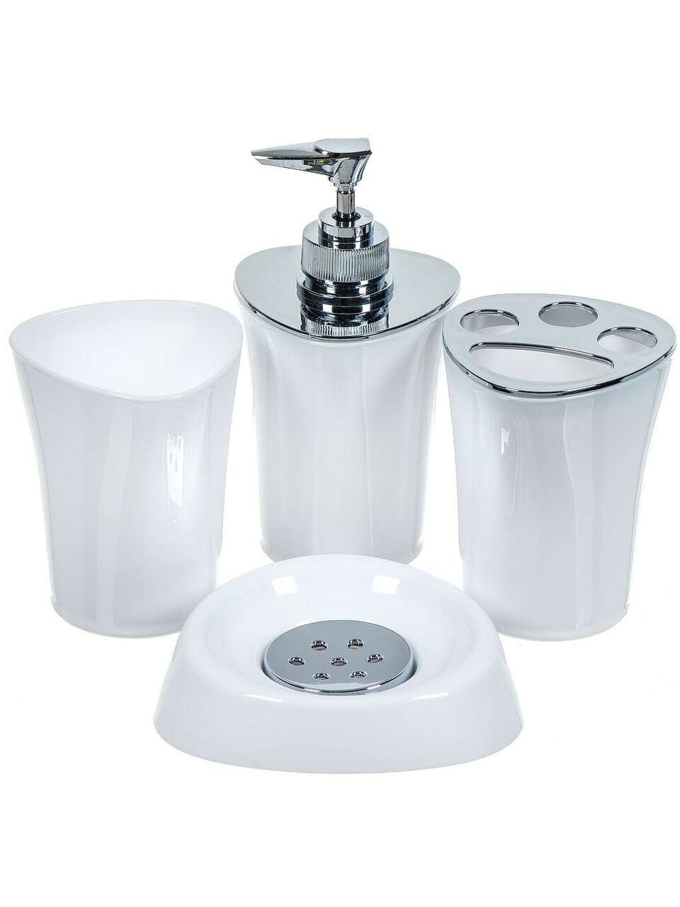 Вы можете приобрести «Набор для ванной 4 предмета, SPE16922-1, белоснежный, стакан, подставка для зубных щеток, дозатор для мыла, мыльница, Y8-2736» и другие товары в нашем интернет-магазине в Ельце по низким ценам и с бесплатным самовывозом.