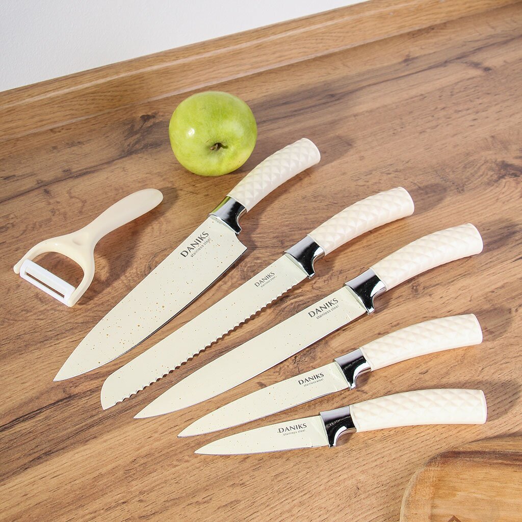 Вы можете приобрести «Набор ножей 6 предметов, подарочная упаковка, белый, нержавеющая сталь, рукоятка пластик, Daniks, YW-A454-PB» и другие товары в нашем интернет-магазине в Белгороде по низким ценам и с бесплатным самовывозом.
