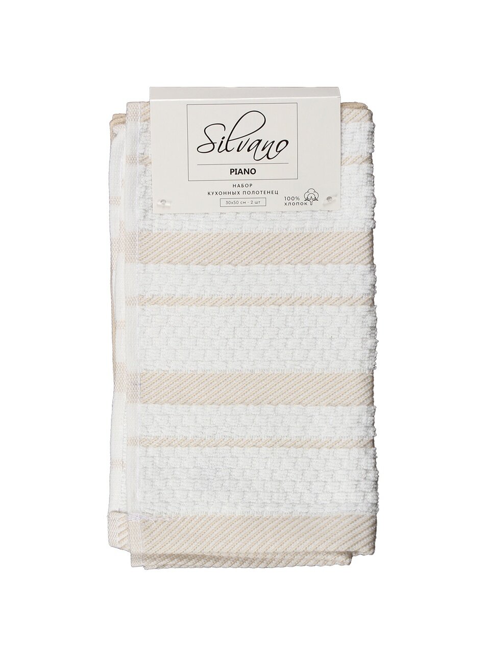 Набор кухонных полотенец Silvano Piano 2 шт 30х50 см — 100% хлопок, оптимальная плотность 400 г/м², стильный бело-бежевый, для дома и дачи.