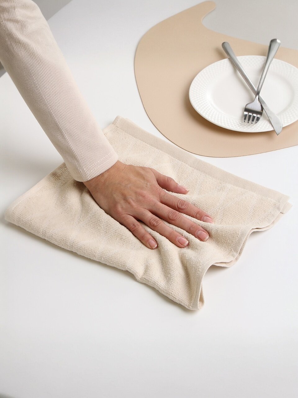 - Размер 30х50 см и плотность 400 г/м² — идеальны для частого использования на кухне.