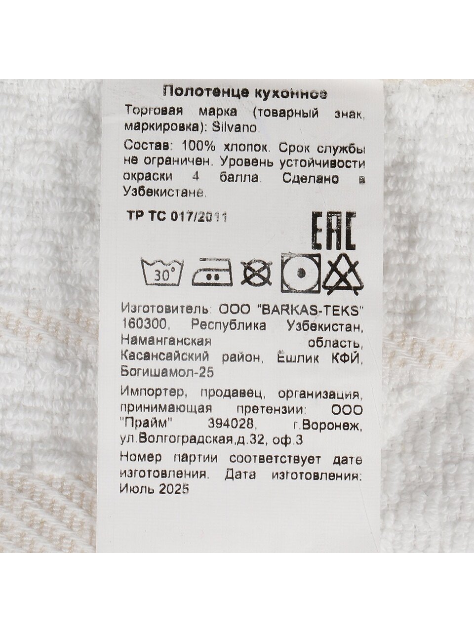 Вы можете приобрести «Набор полотенец кухонных 2 шт, 30х50 см, махровый, 100% хлопок, 400 г/м2, Silvano, Piano, бело-бежевый, Узбекистан» и другие товары в нашем интернет-магазине в Шахтах по низким ценам и с бесплатным самовывозом.
