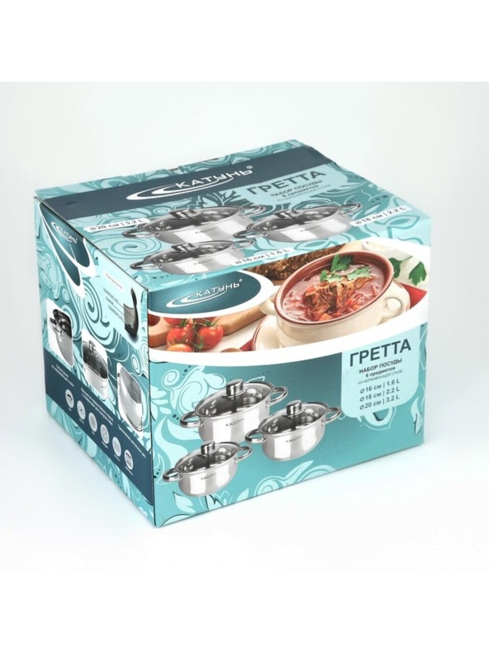 Выбирайте набор посуды из нержавеющей стали Катунь Гретта — это выгодная инвестиция в комфорт и безопасность на кухне. Закажите сейчас и получите универсальный комплект для любых кулинарных задач по доступной цене.