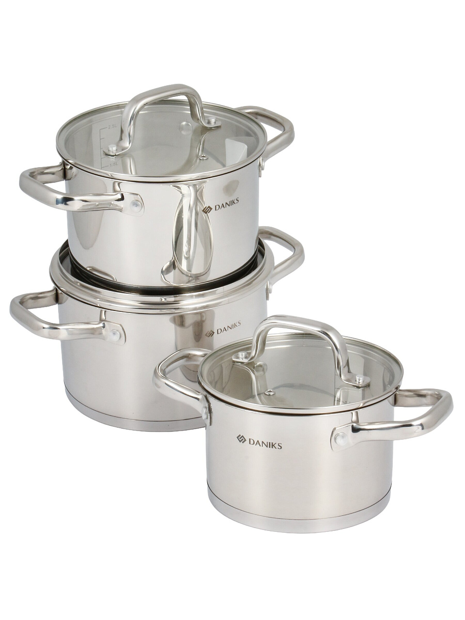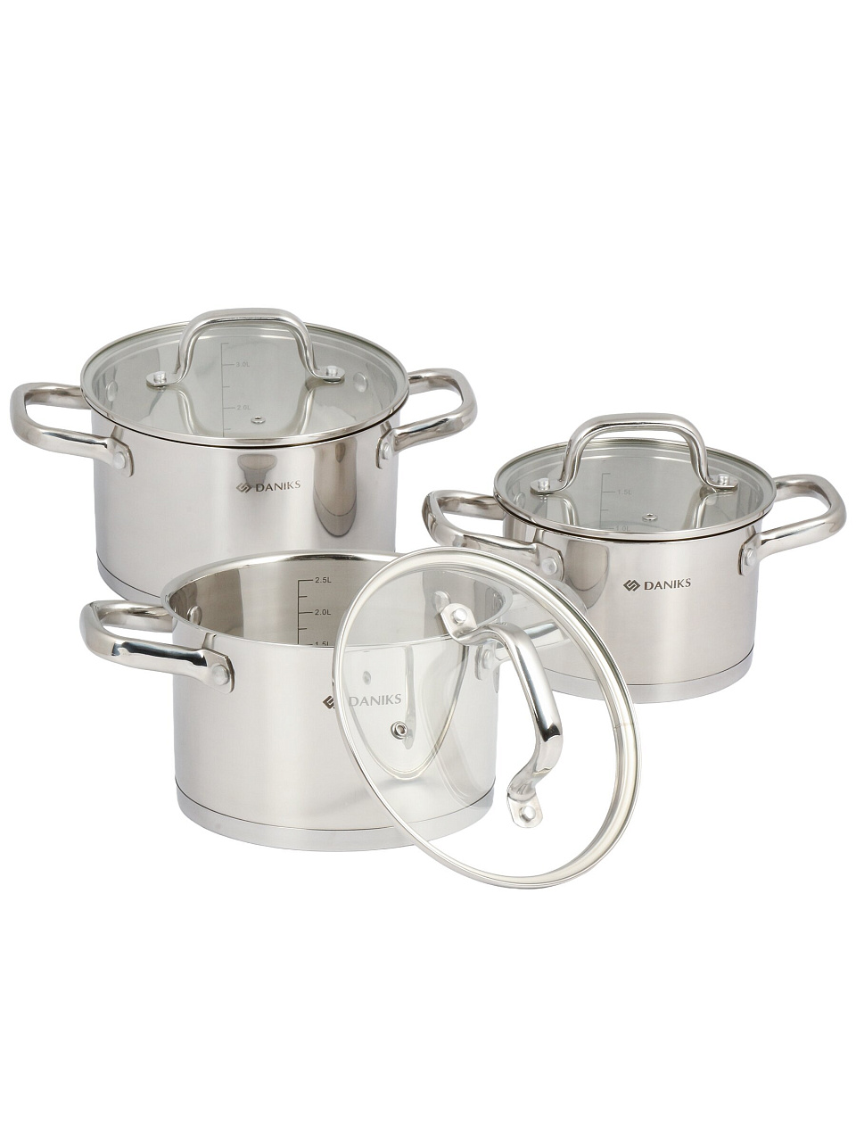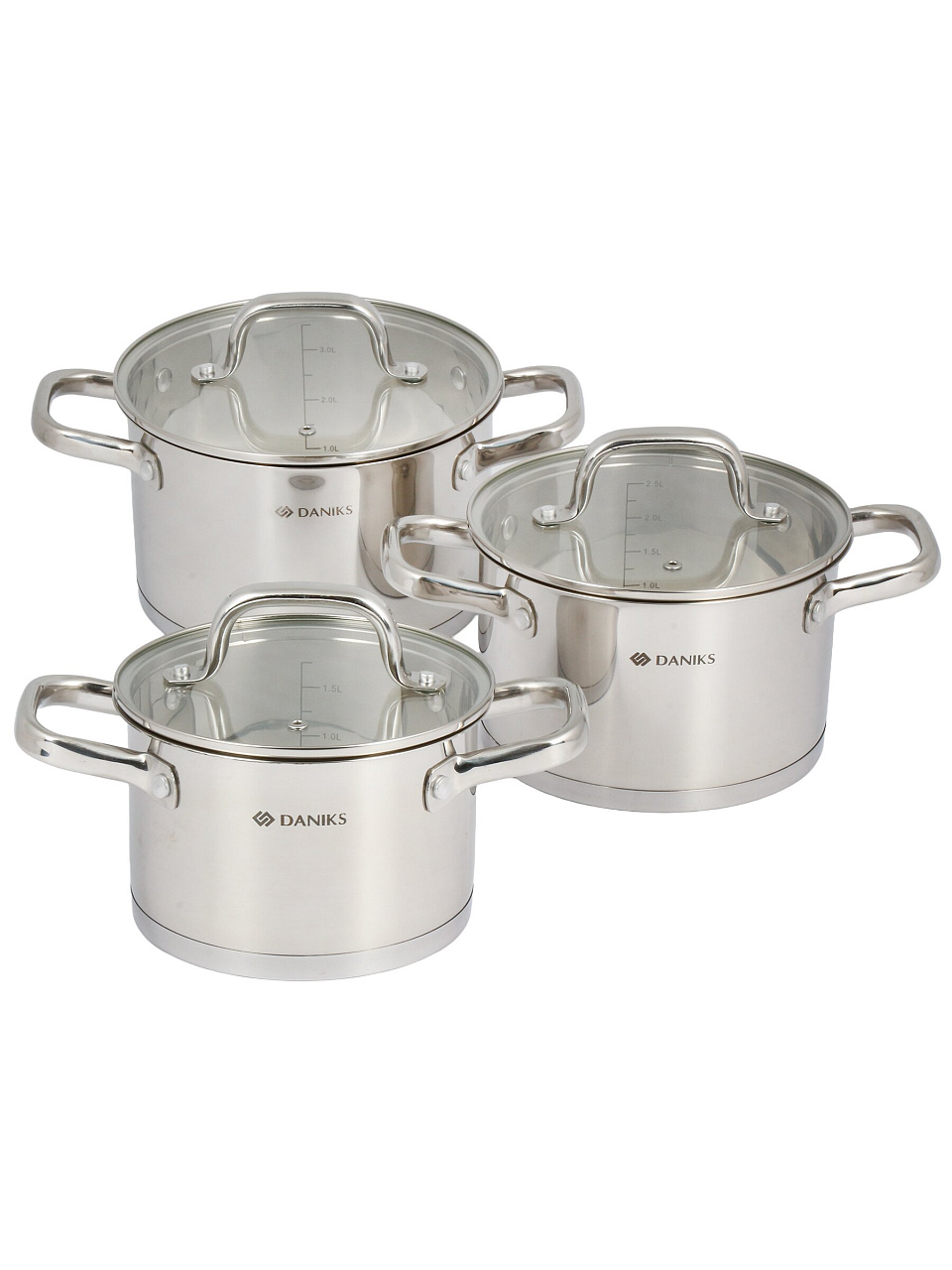 Набор посуды нерж, 6 пр, кастрюли 2.1,2.9,3.9, DNN3, SD-A17-6