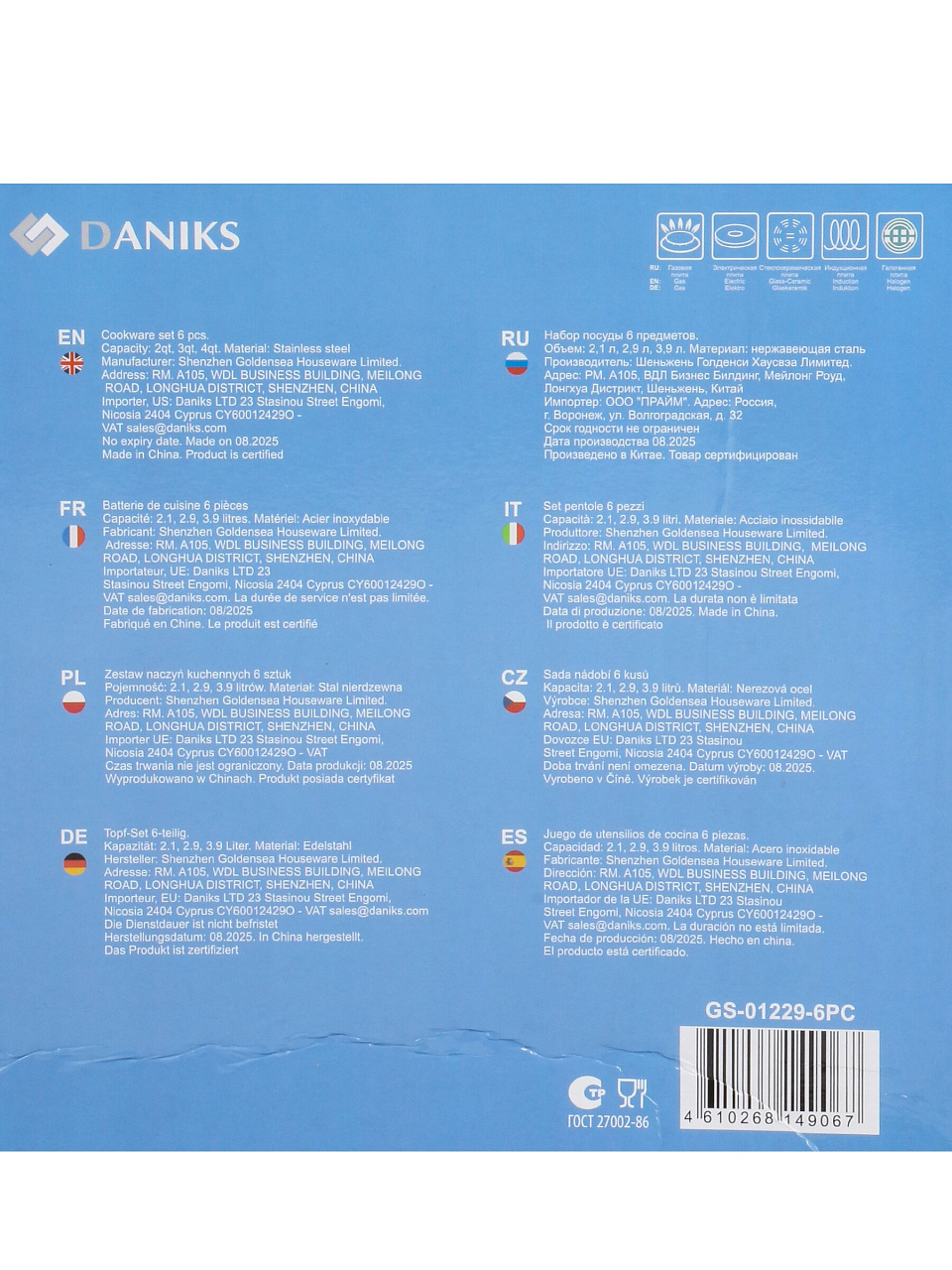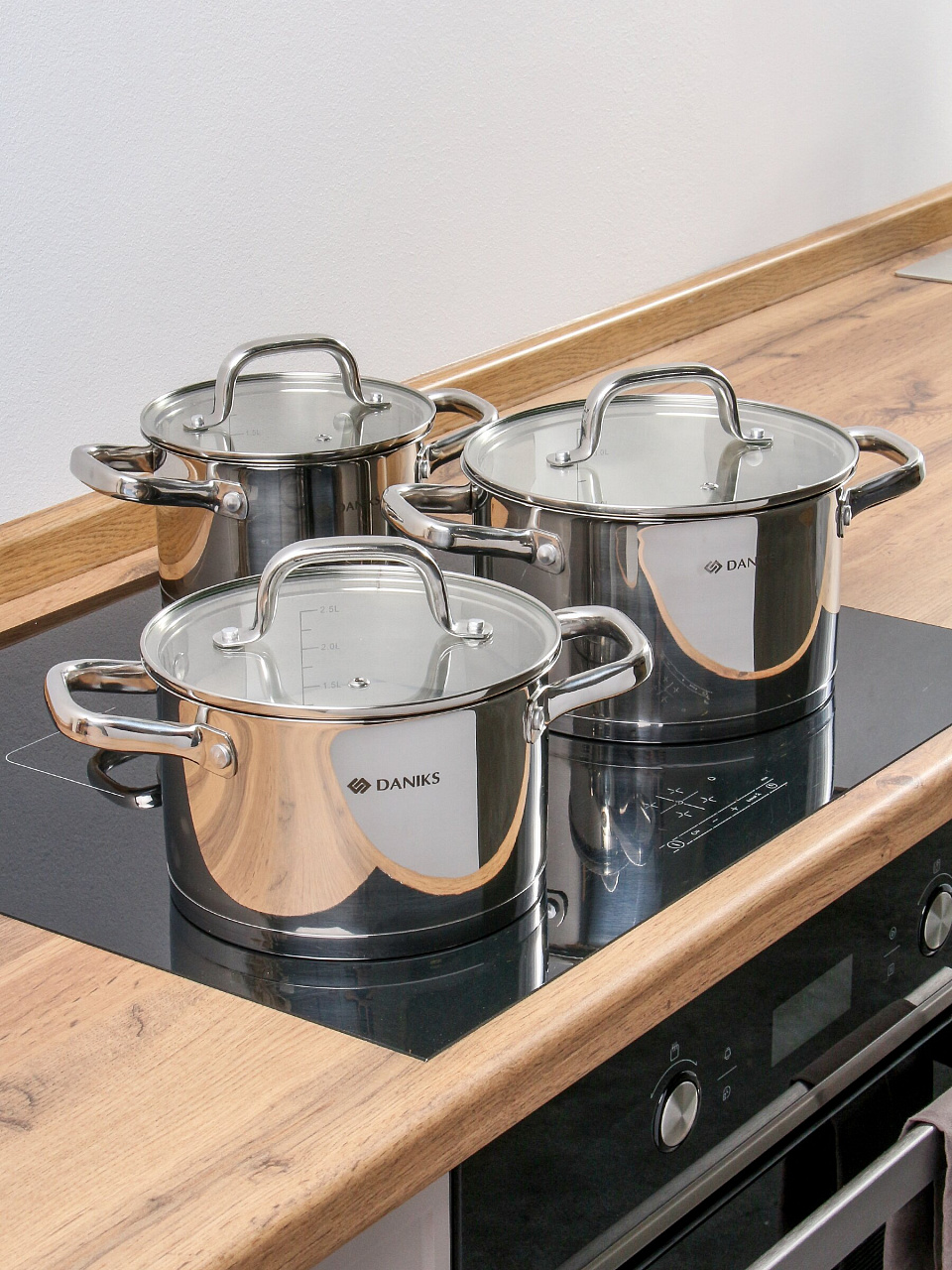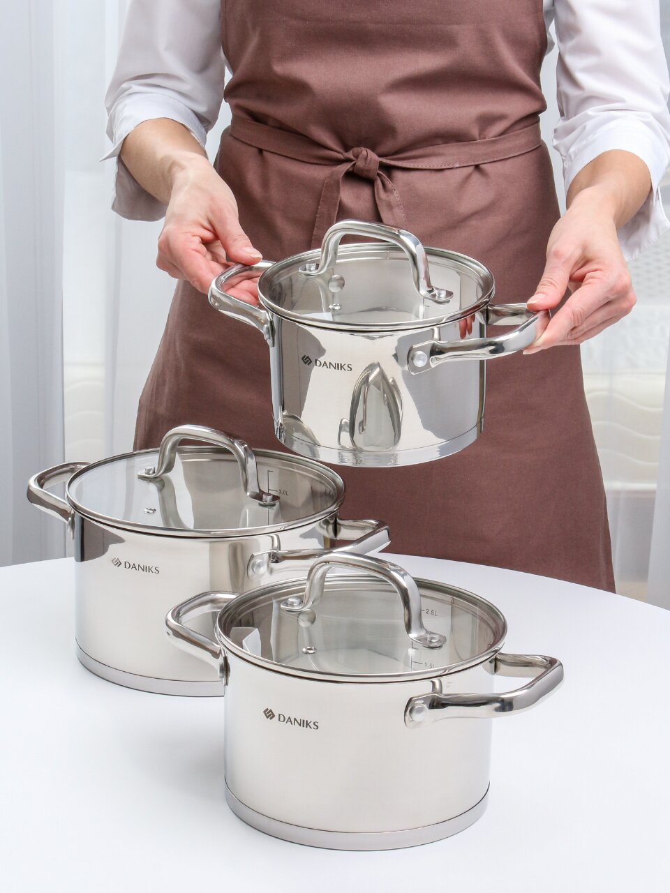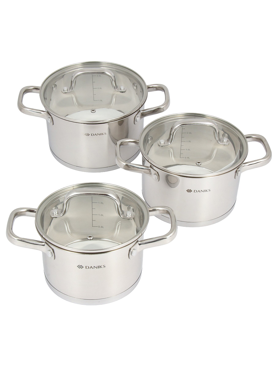 Набор посуды нерж, 6 пр, кастрюли 2.1,2.9,3.9, DNN3, SD-A17-6