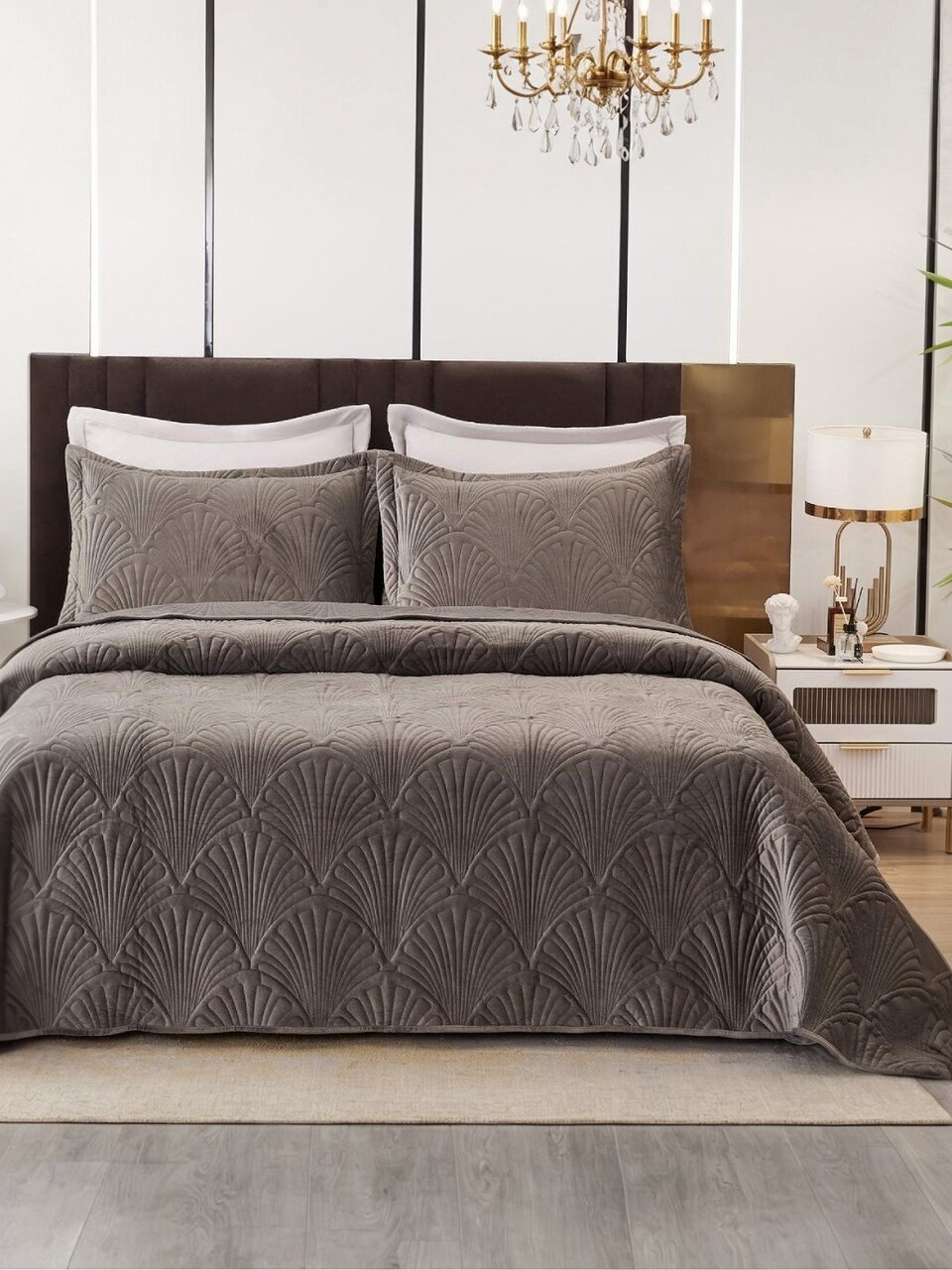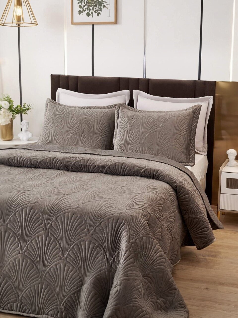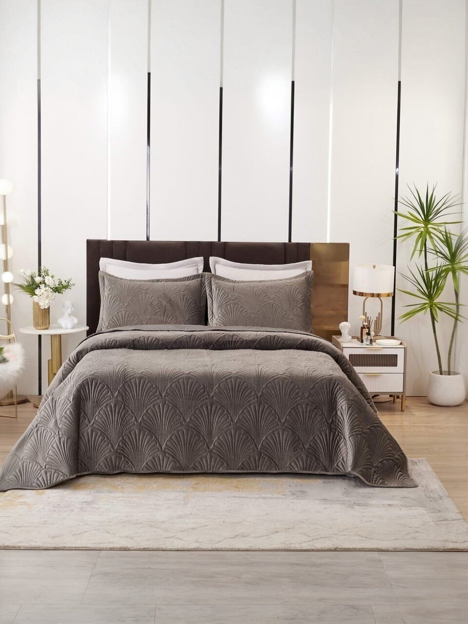 Набор создает уютную и стильную атмосферу в спальне, что помогает расслабиться и наслаждаться комфортом после долгого дня. Он также подчеркивает индивидуальность и вкус владельца, делая интерьер комнаты уникальным и привлекательным.