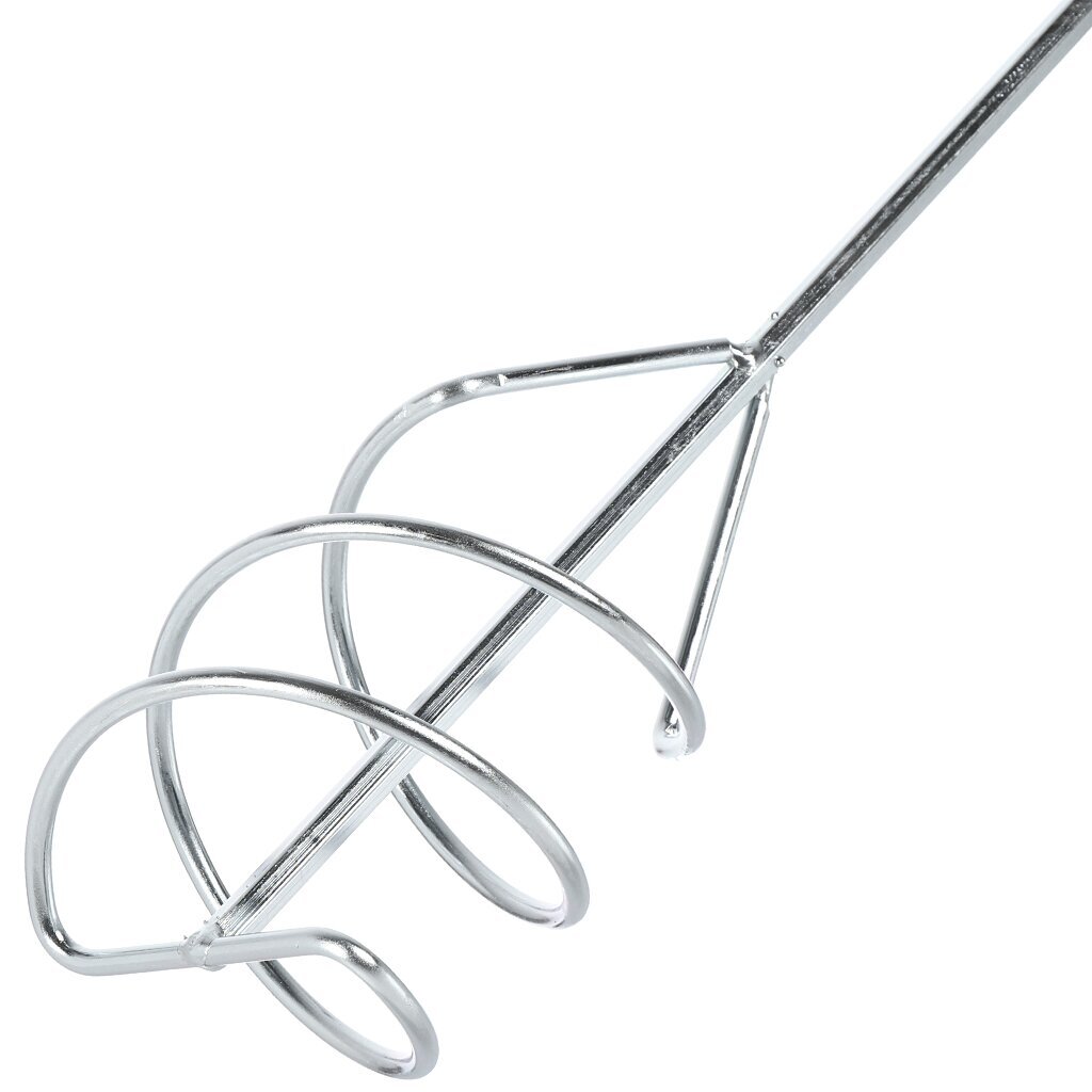 Насадка имеет усиленные лопасти с круглым сечением и применяется для перемешивания лакокрасочных материалов и строительных смесей. Она может быть использована со строительным миксером либо с дрелью.