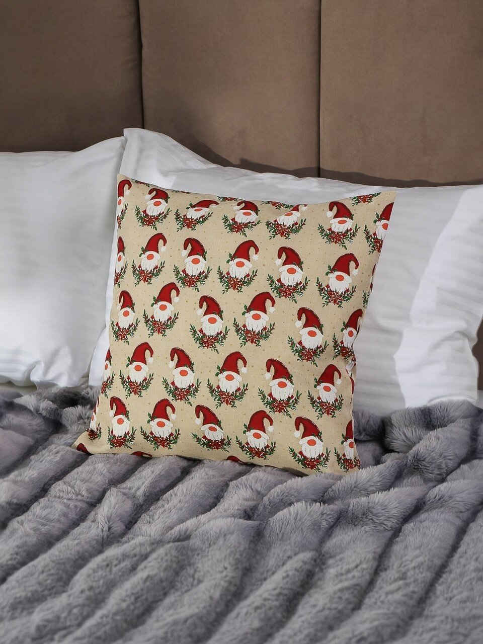 Если вы ищете, какой чехол на подушку выбрать для новогоднего декора, обратите внимание на этот вариант: он не линяет, не теряет форму и безопасен для детей. В отличие от аналогов с хлопком, полиэстер быстрее сохнет, не требует глажки и сохраняет насыщенность рисунка. Подходит ли для подарка? Да, благодаря универсальному дизайну и нейтральному бежевому цвету, этот чехол понравится и взрослым, и детям. Как использовать? Просто наденьте на подушку стандартного размера — и ваш интерьер преобразится за пару минут.