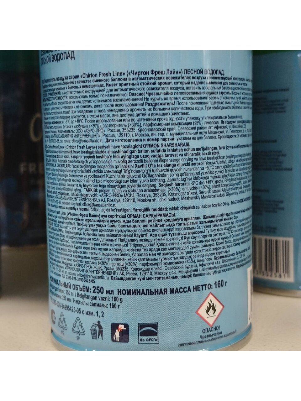 Вы можете приобрести «Освежитель воздуха Chirton, 250 мл, Fresh Line Лесной водопад, сменный, сухое распыление» и другие товары в нашем интернет-магазине в Армавире по низким ценам и с бесплатным самовывозом.
