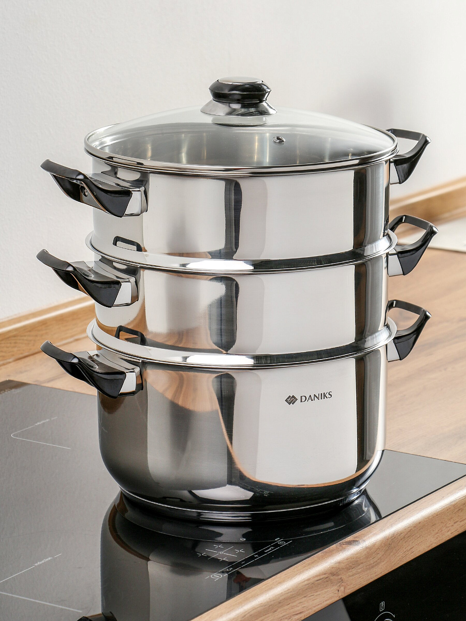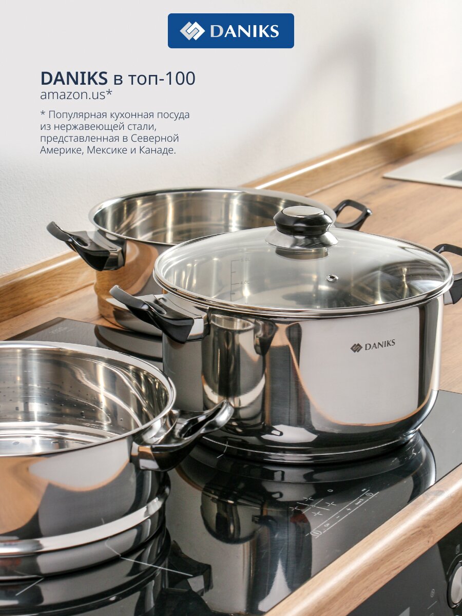 Мантоварка из нержавеющей стали 24 см, 5,8 л, 3 секции Daniks — готовьте вкусно и быстро на любой плите, экономьте время и место на кухне.