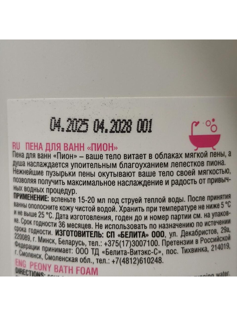 Пена для ванн «Пион» – ваше тело витает в облаках мягкой пены, а разум наслаждается упоительным благоуханием лепестков пиона. Пион – символ красоты, распуская свои нежные и трепетные лепестки, он наполняет мир буйством красок.