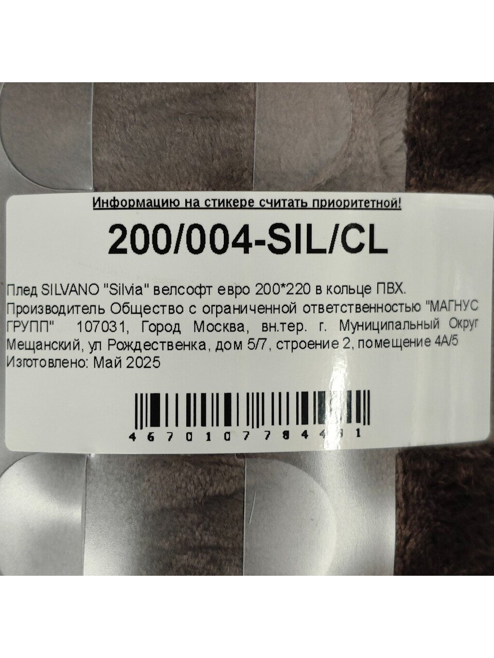 Вы можете приобрести «Плед евро, 200х220 см, велсофт жаккард, 100% полиэстер, Silvano, Silvia, коричневый, 200/004-SIL/CL» и другие товары в нашем интернет-магазине в Орле по низким ценам и с бесплатным самовывозом.