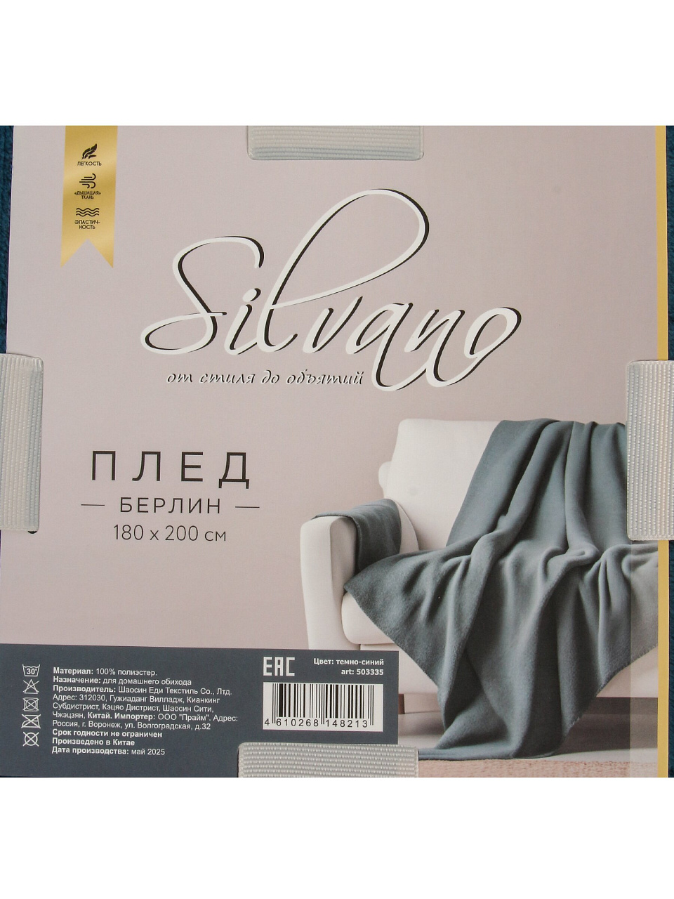 Плед 180х200 см, микрофибра, 100%пэ, 280г, Silvano, Берлин, темно-синий