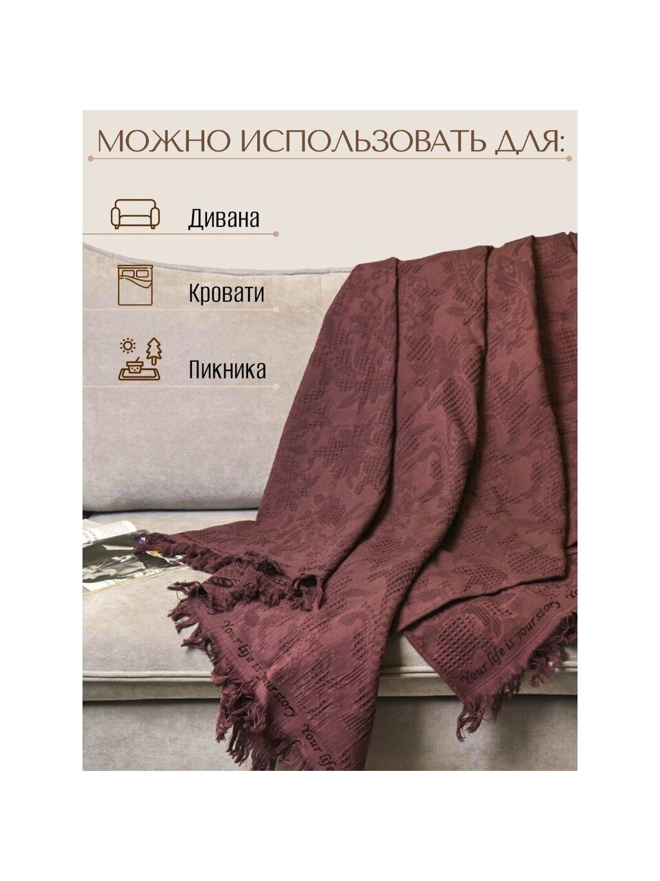 В отличие от синтетических аналогов, хлопковый плед Barkas Green Days не электризуется, не скатывается и сохраняет мягкость даже после многократных стирок при температуре до 60 градусов. Орнамент и натуральный коричневый цвет легко впишутся в любой интерьер, а бахрома добавляет стильный акцент. Как использовать плед? Он идеален для дома, дачи, пикника или в качестве подарка — универсальное решение для разных сценариев.