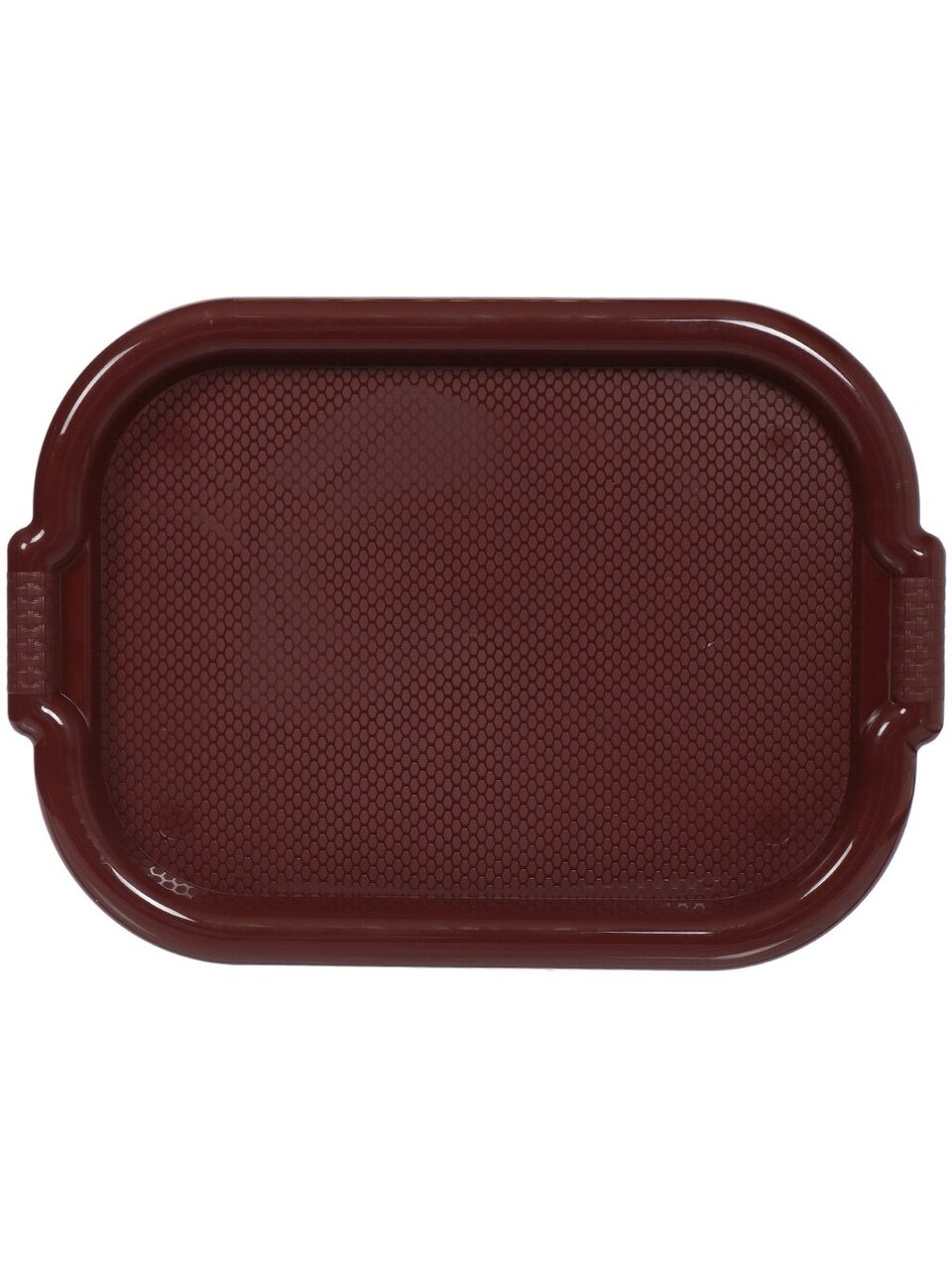 Поднос прямоугольной формы, размеры 36х50 см, вес 0,3 кг, оснащён эргономичными ручками и бортиками для безопасной переноски и защиты от проливов.