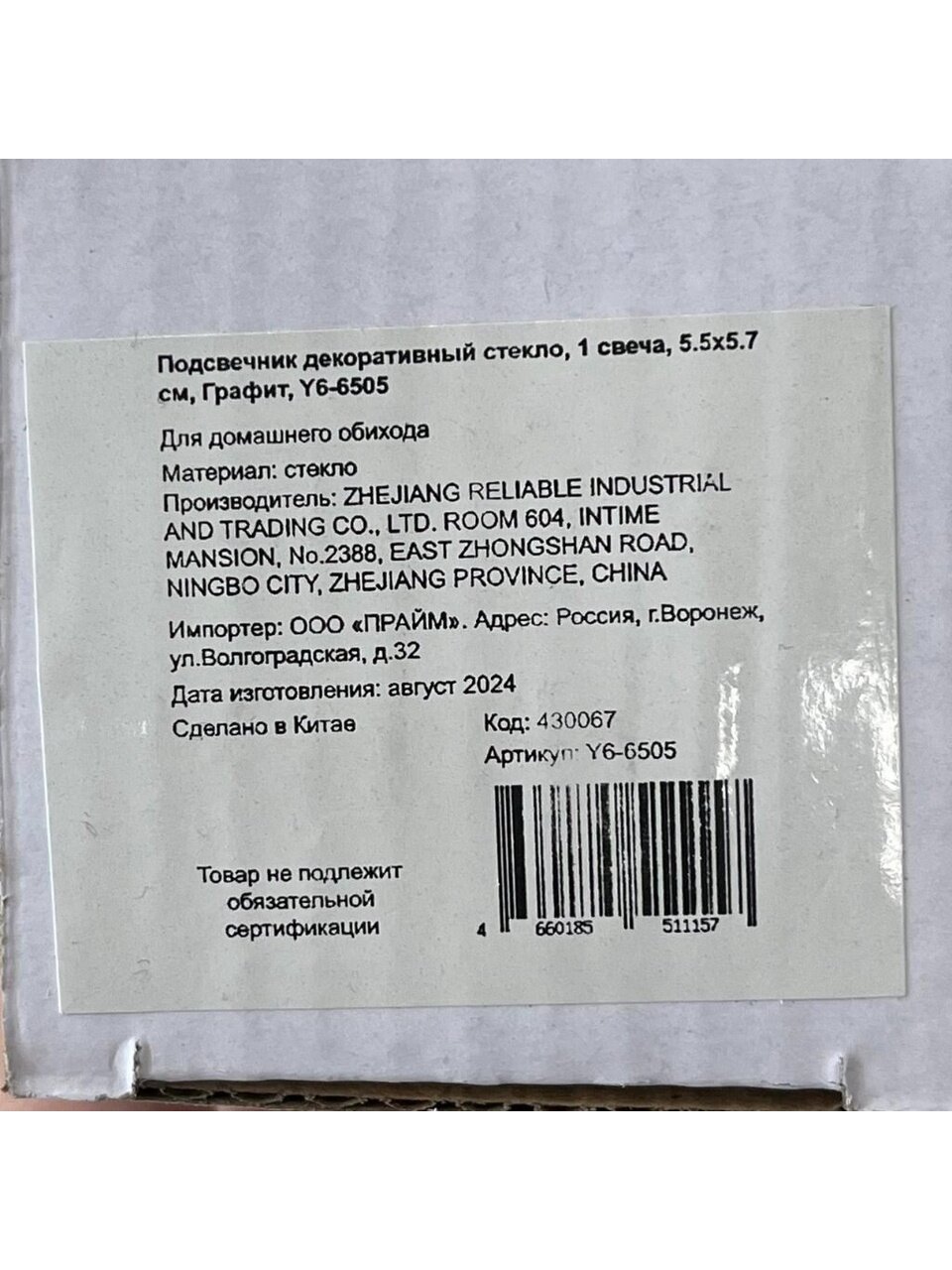 Вы можете приобрести «Подсвечник декоративный стекло, 1 свеча, 5.5х5.7 см, Графит, Y6-6505» и другие товары в нашем интернет-магазине в Орле по низким ценам и с бесплатным самовывозом.