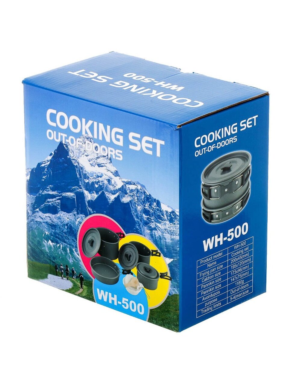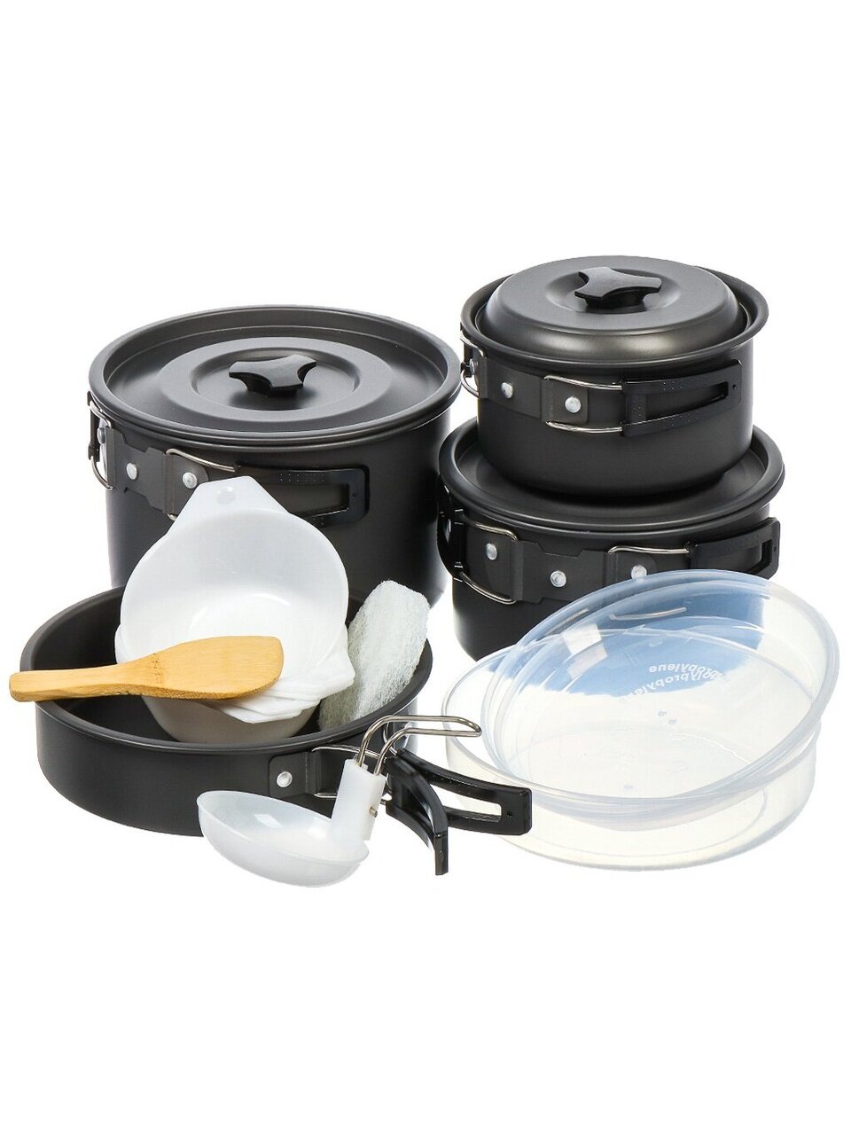 Набор посуды походный, алюминий, 15 предметов, кастрюля сковорода, ложка, губка, тарелка, миска, T2022-917