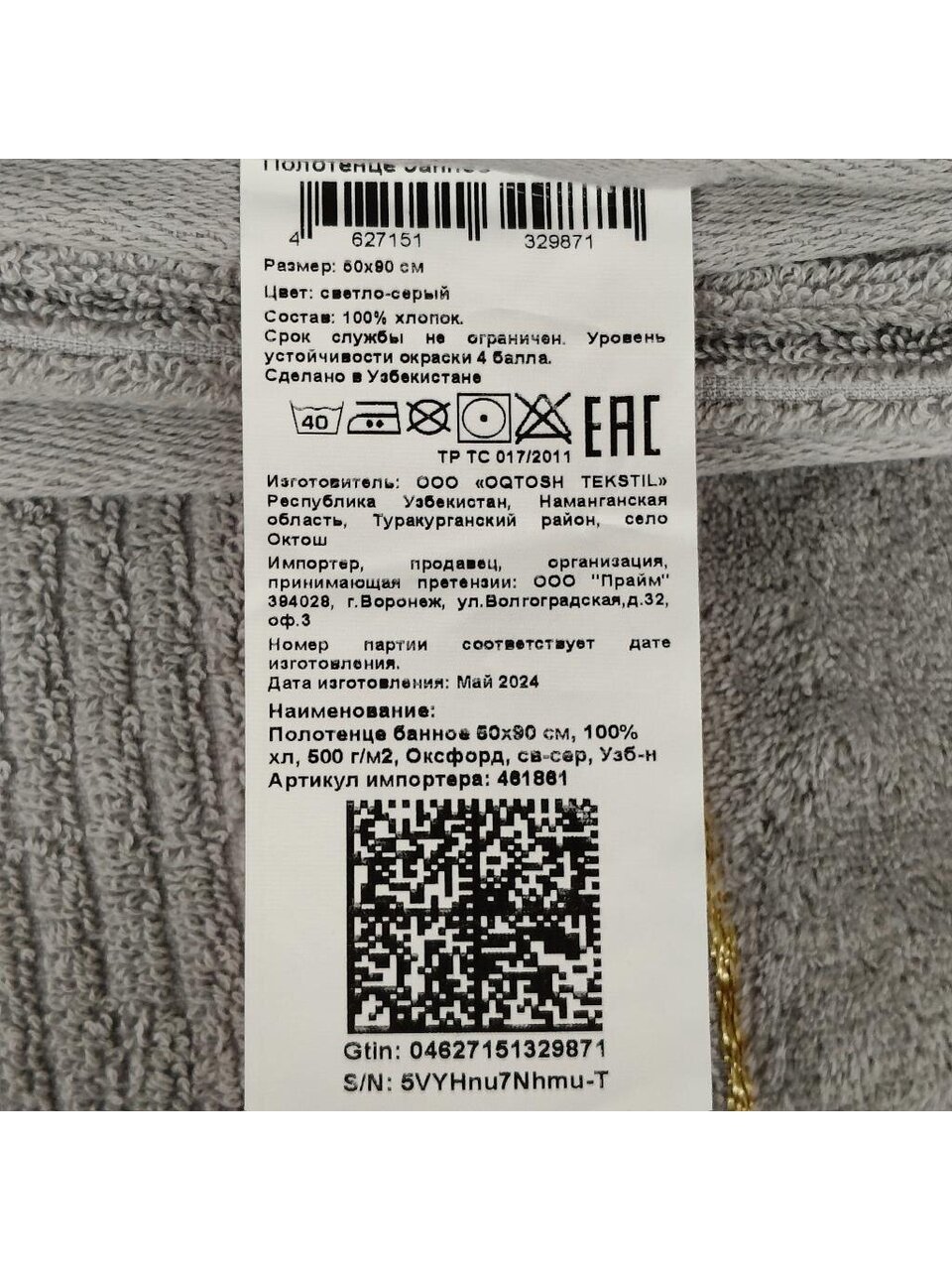 Вы можете приобрести «Полотенце банное 50х90 см, 100% хлопок, 500 г/м2, Оксфорд, светло-серое, Узбекистан» и другие товары в нашем интернет-магазине в Белгороде по низким ценам и с бесплатным самовывозом.