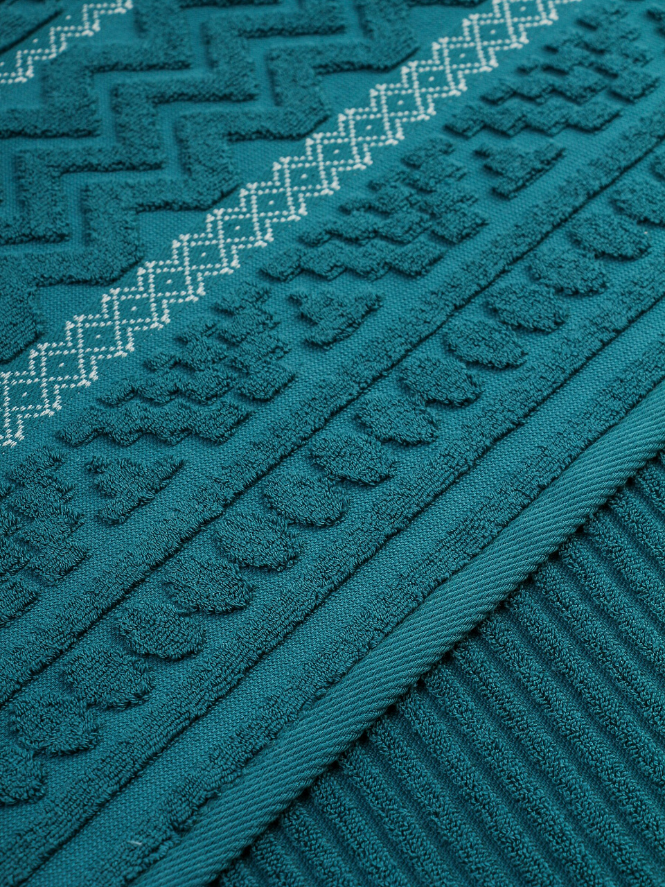 Жаккардовое плетение и натуральный хлопок делают полотенце долговечным, стильным и универсальным — оно не требует сложного ухода и долго сохраняет внешний вид.